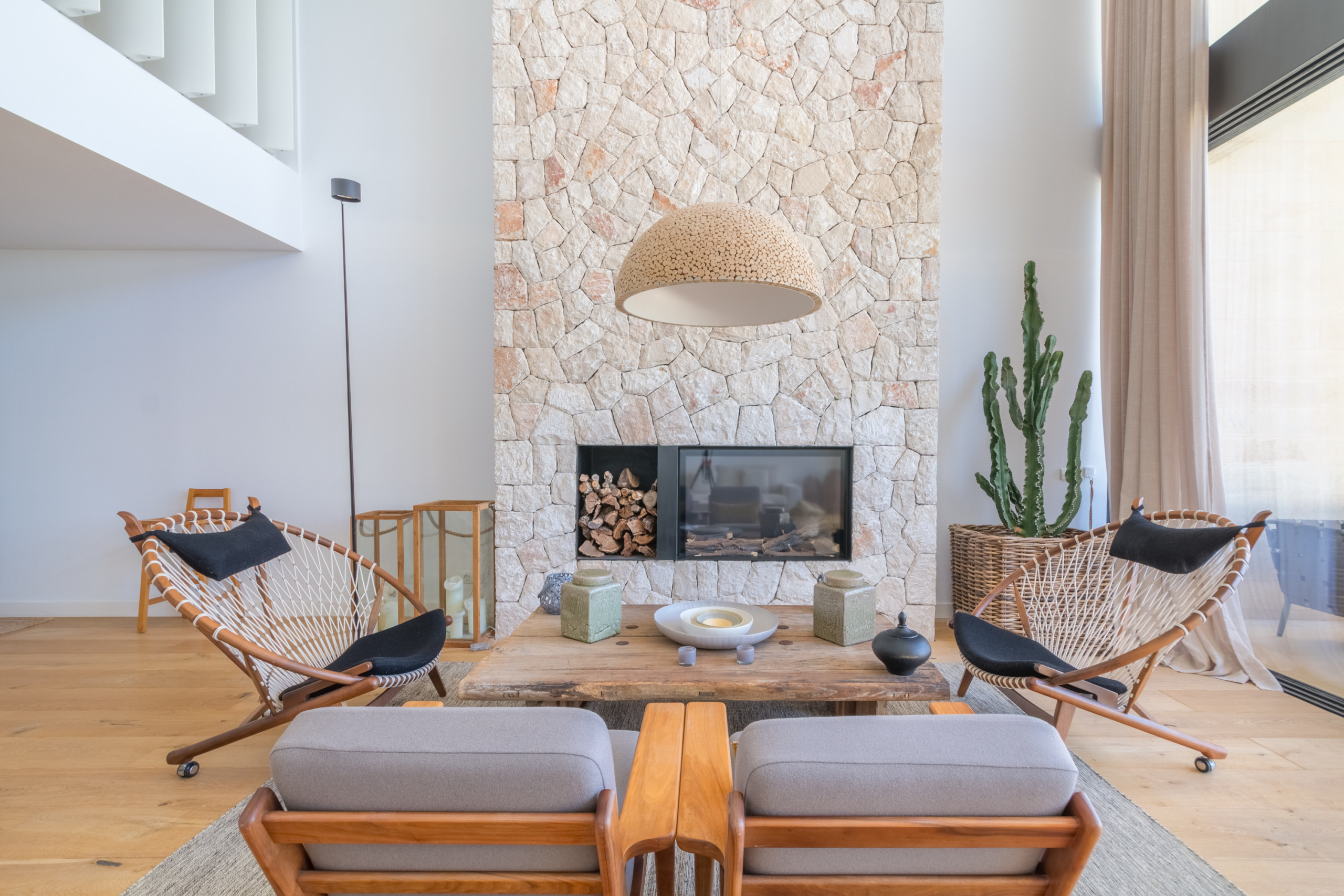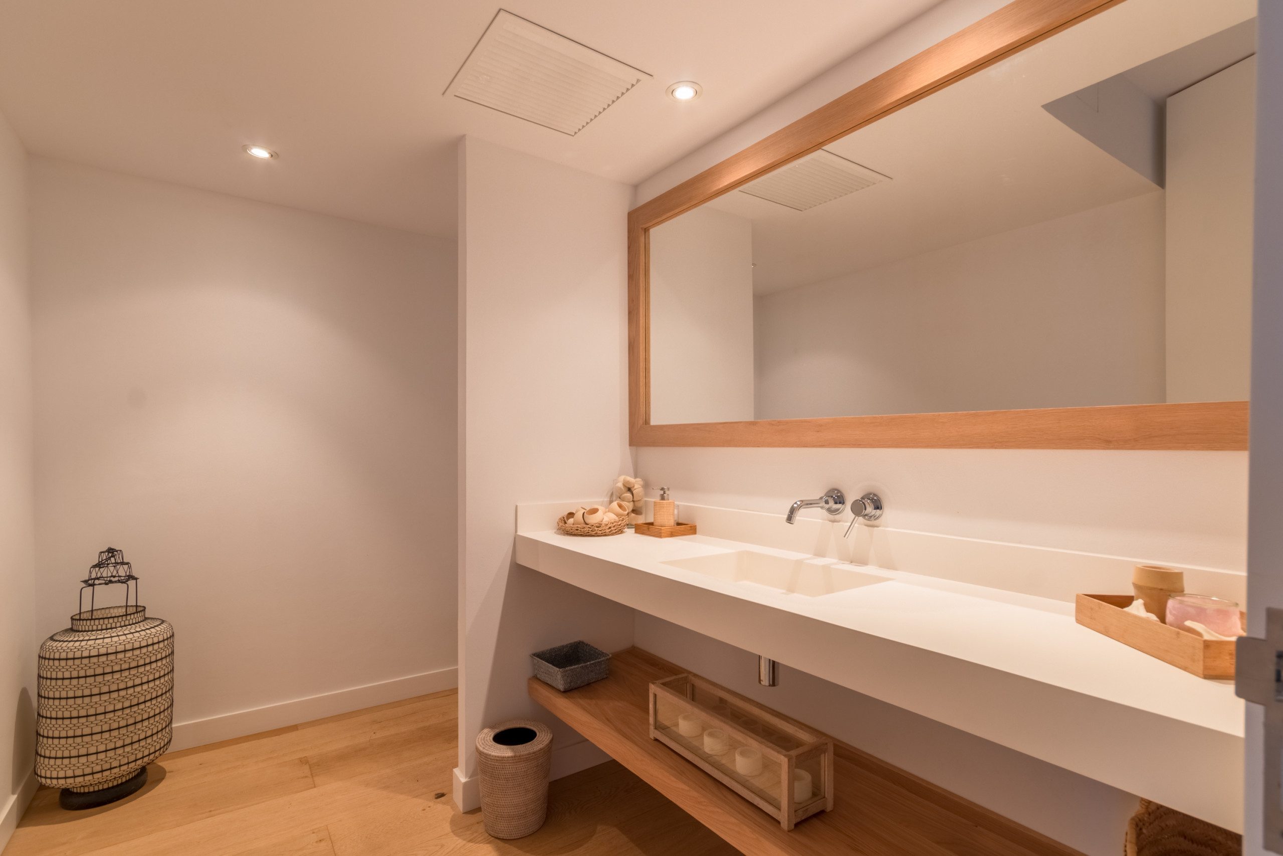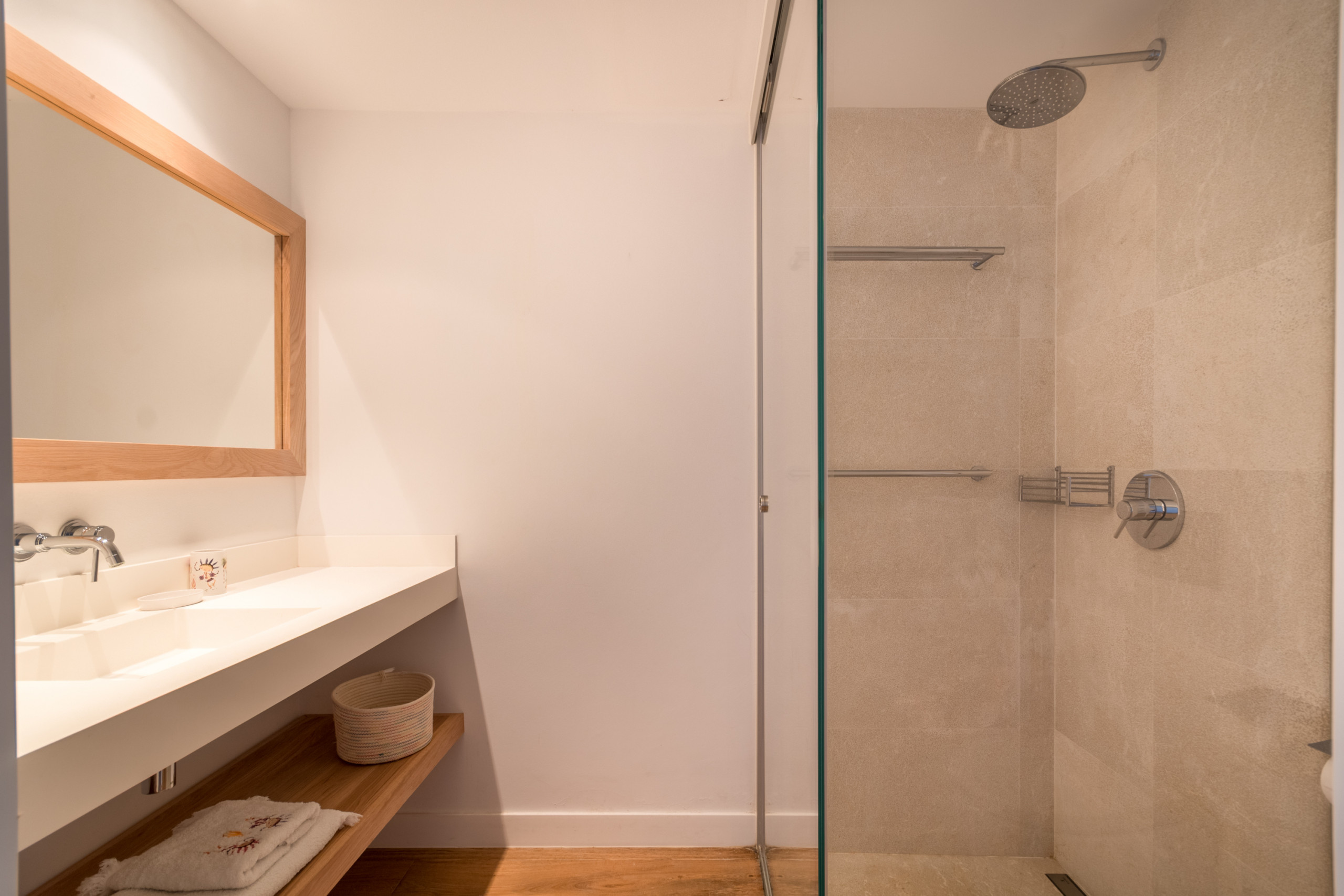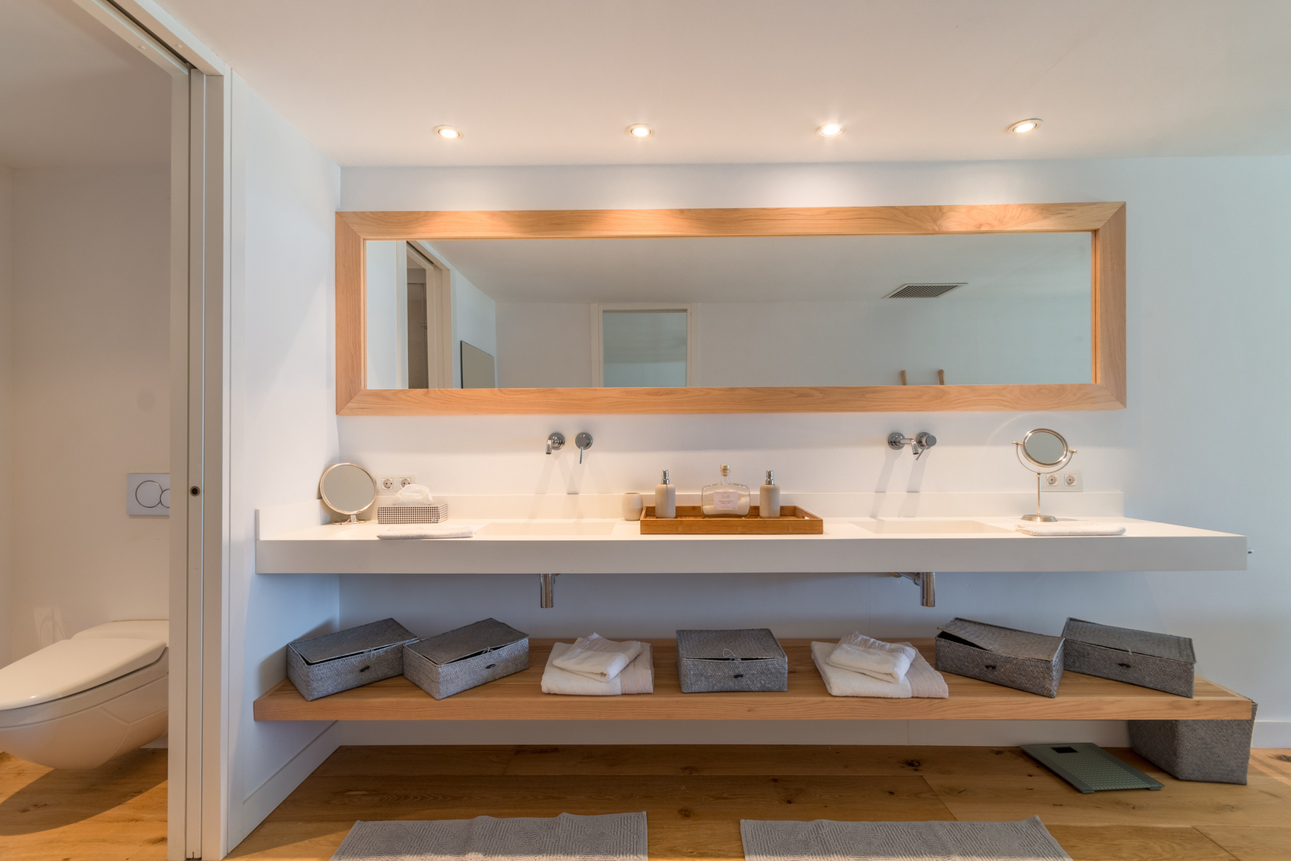 Pouvant accueillir jusqu'à 8 invités, dont 1 bébé, la villa dispose de 4 chambres doubles spacieuses, chacune avec sa propre salle de bain privative pour une intimité totale. Répartis sur 2 étages, les intérieurs sont définis par des tons neutres, des matériaux naturels et une lumière abondante, créant une atmosphère chaleureuse et sophistiquée. L'espace de vie ouvert se connecte à une cuisine moderne entièrement équipée et s'étend sur une terrasse meublée lumineuse avec vue sur la mer. La chambre principale se distingue par une baignoire îlot surplombant la Méditerranée, tandis que les autres chambres offrent confort et individualité. Les équipements comprennent la climatisation, le chauffage au sol, une cheminée, la télévision internationale, le WiFi, un coffre-fort et des installations de buanderie. À l'extérieur, les invités profitent d'une terrasse privée clôturée, d'un balcon et d'un accès direct à la plage.