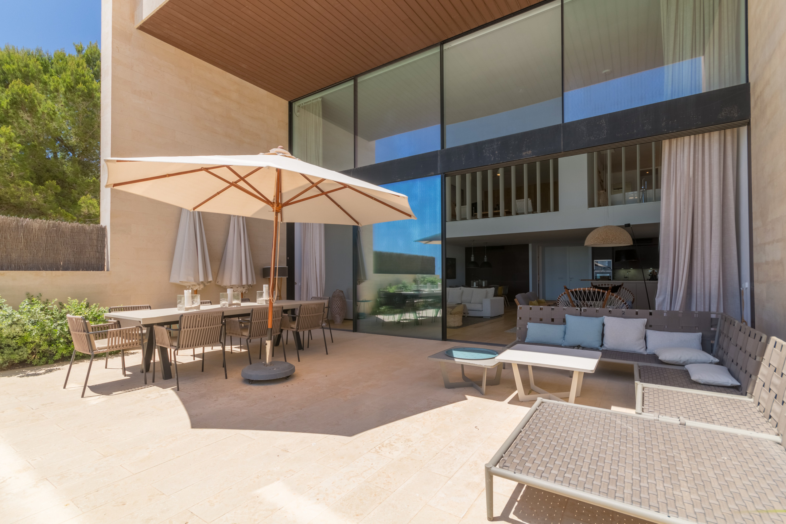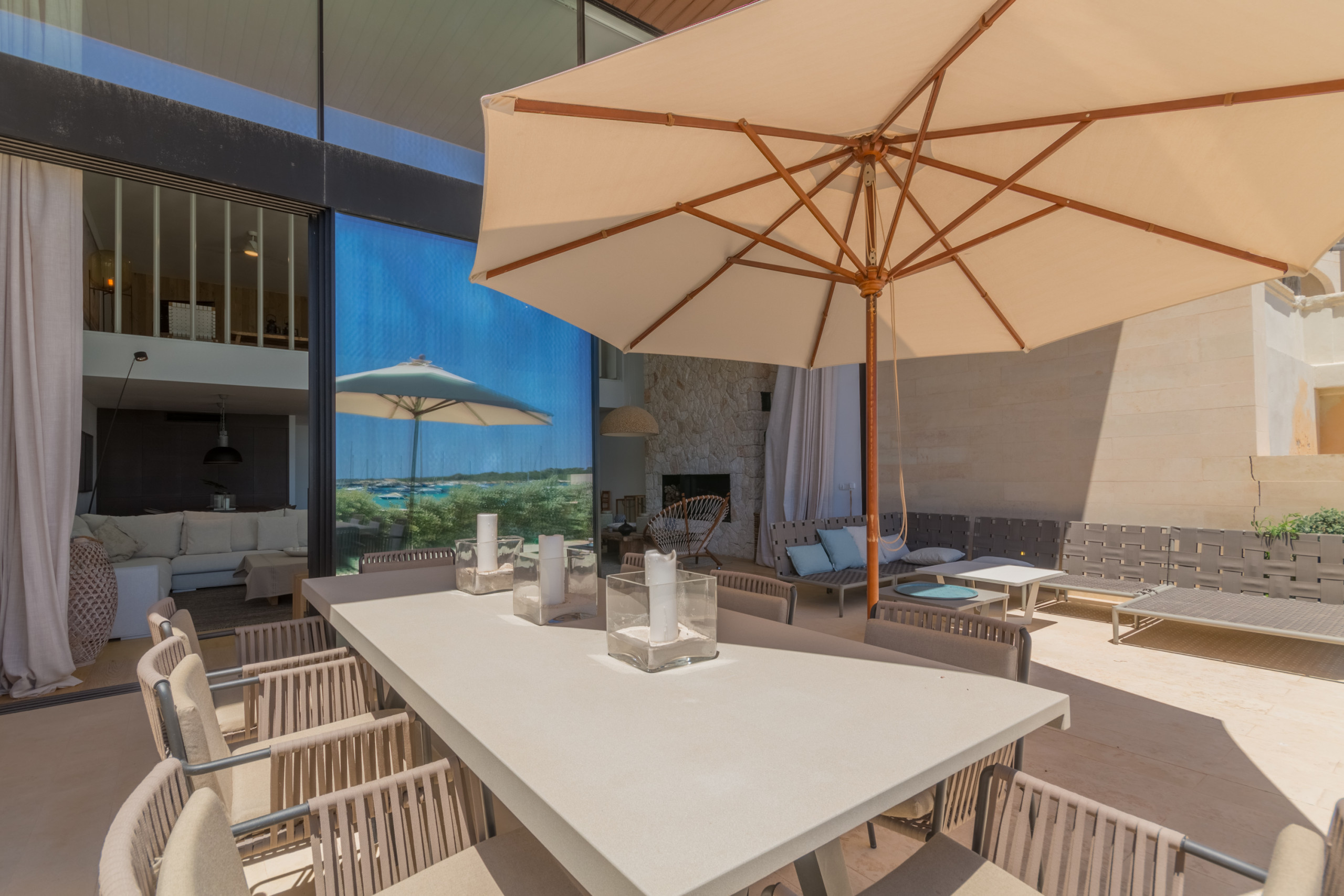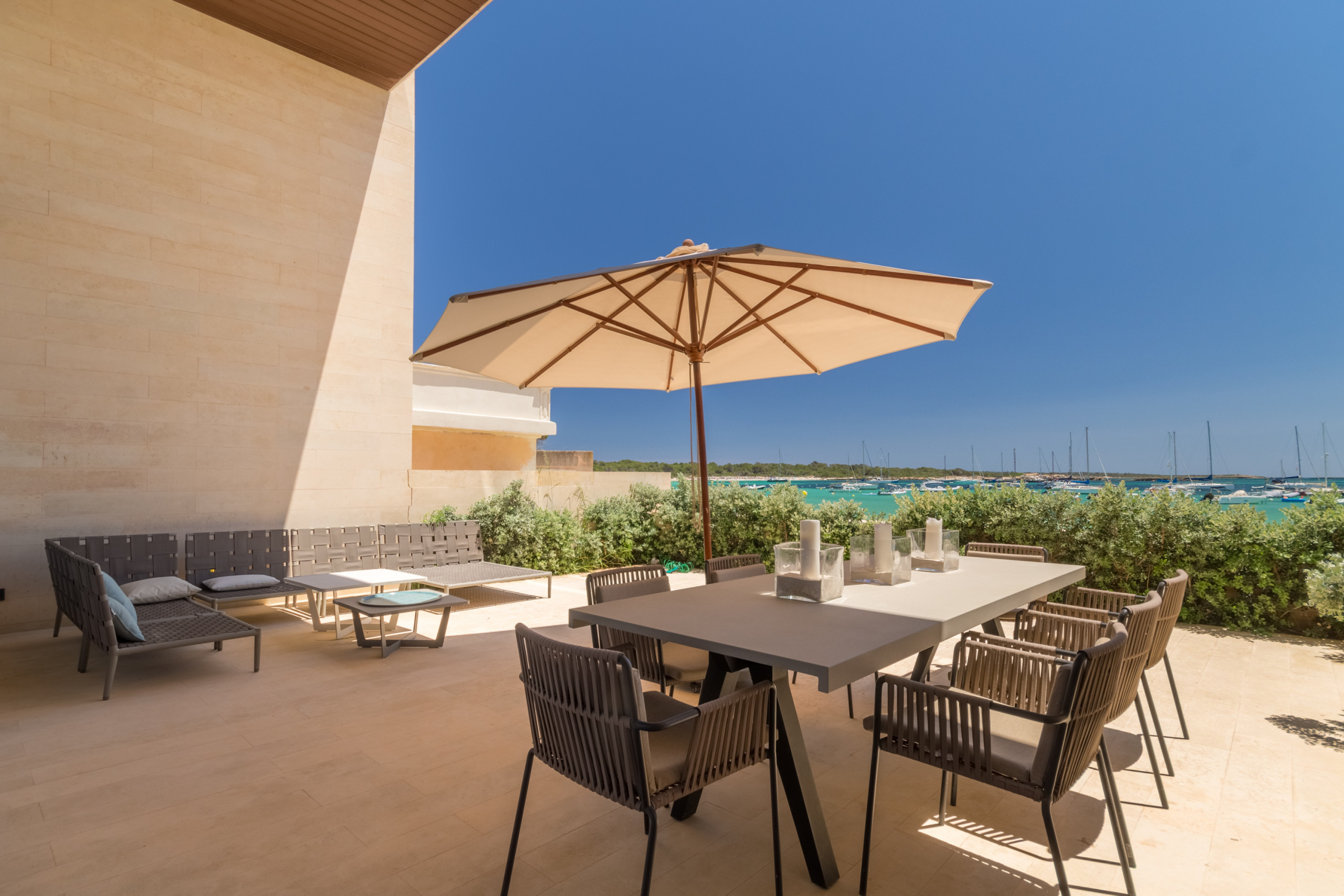 Niché directement sur le front de mer à Colònia de Sant Jordi, la villa est à distance de marche des supermarchés, boutiques, bars et restaurants tels que le réputé Sal de Coco et Cassai Beach House. À seulement 1,2 miles, vous trouverez des plages de sable comme Platja Es Port et Platja Es Dolç, tandis que des trésors naturels tels que Es Trenc et Caló des Moro sont à courte distance en voiture. La région offre des possibilités infinies : promenades en bord de mer, sports nautiques, visites du Parc National de Cabrera et villages charmants à proximité — le tout à moins d'une heure de Palma.