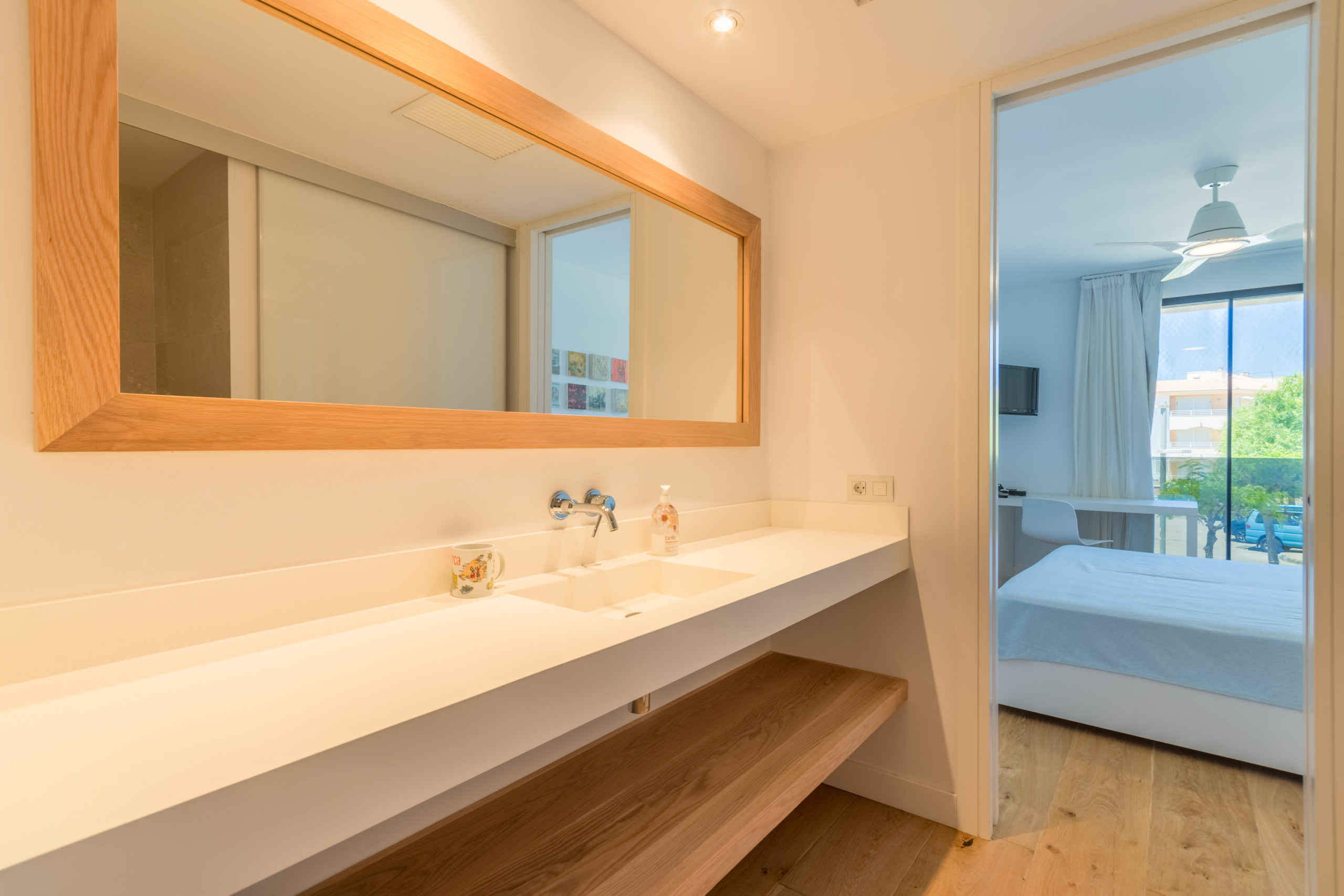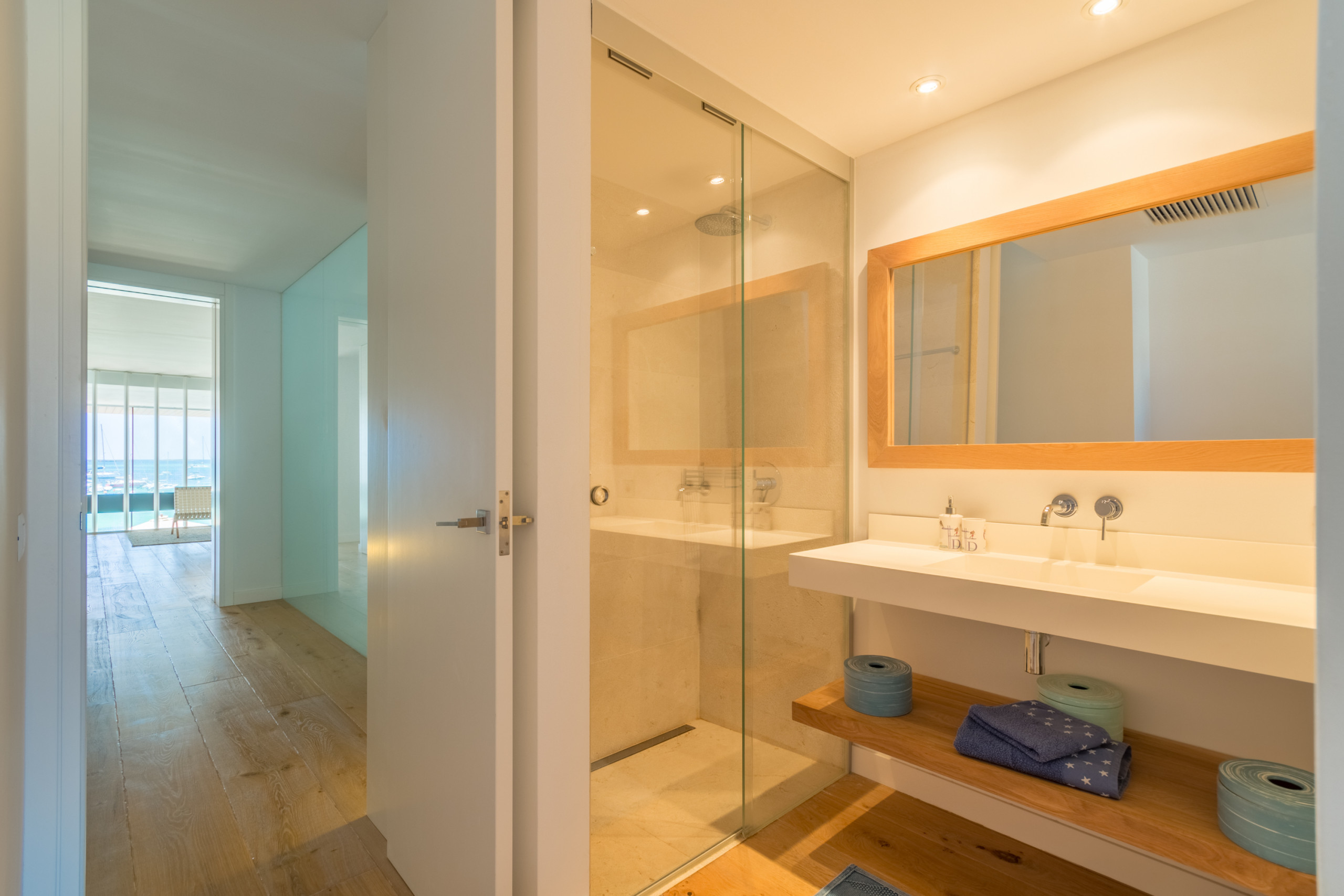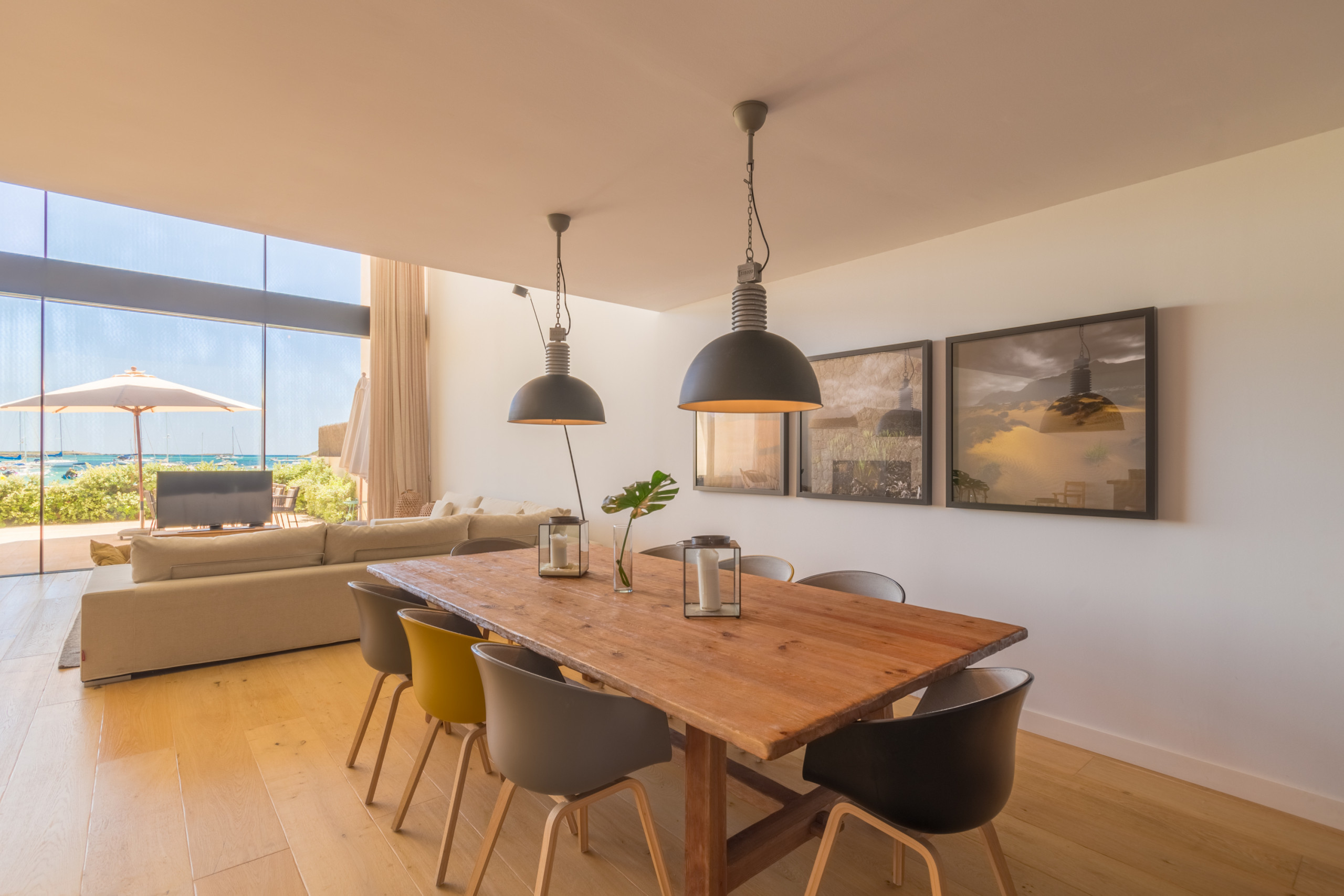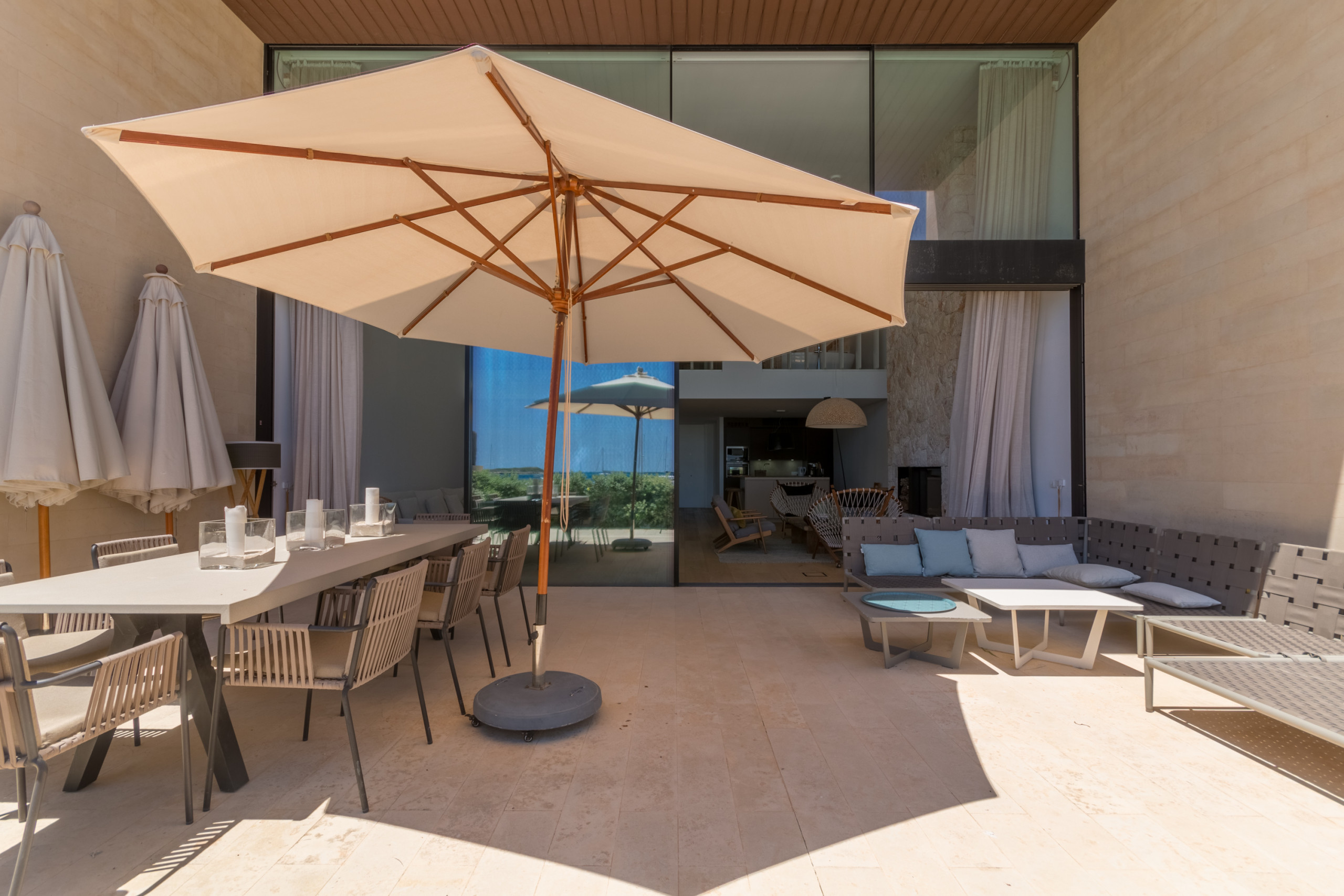 Niché directement sur le front de mer à Colònia de Sant Jordi, la villa est à distance de marche des supermarchés, boutiques, bars et restaurants tels que le réputé Sal de Coco et Cassai Beach House. À seulement 1,2 miles, vous trouverez des plages de sable comme Platja Es Port et Platja Es Dolç, tandis que des trésors naturels tels que Es Trenc et Caló des Moro sont à courte distance en voiture. La région offre des possibilités infinies : promenades en bord de mer, sports nautiques, visites du Parc National de Cabrera et villages charmants à proximité — le tout à moins d'une heure de Palma.