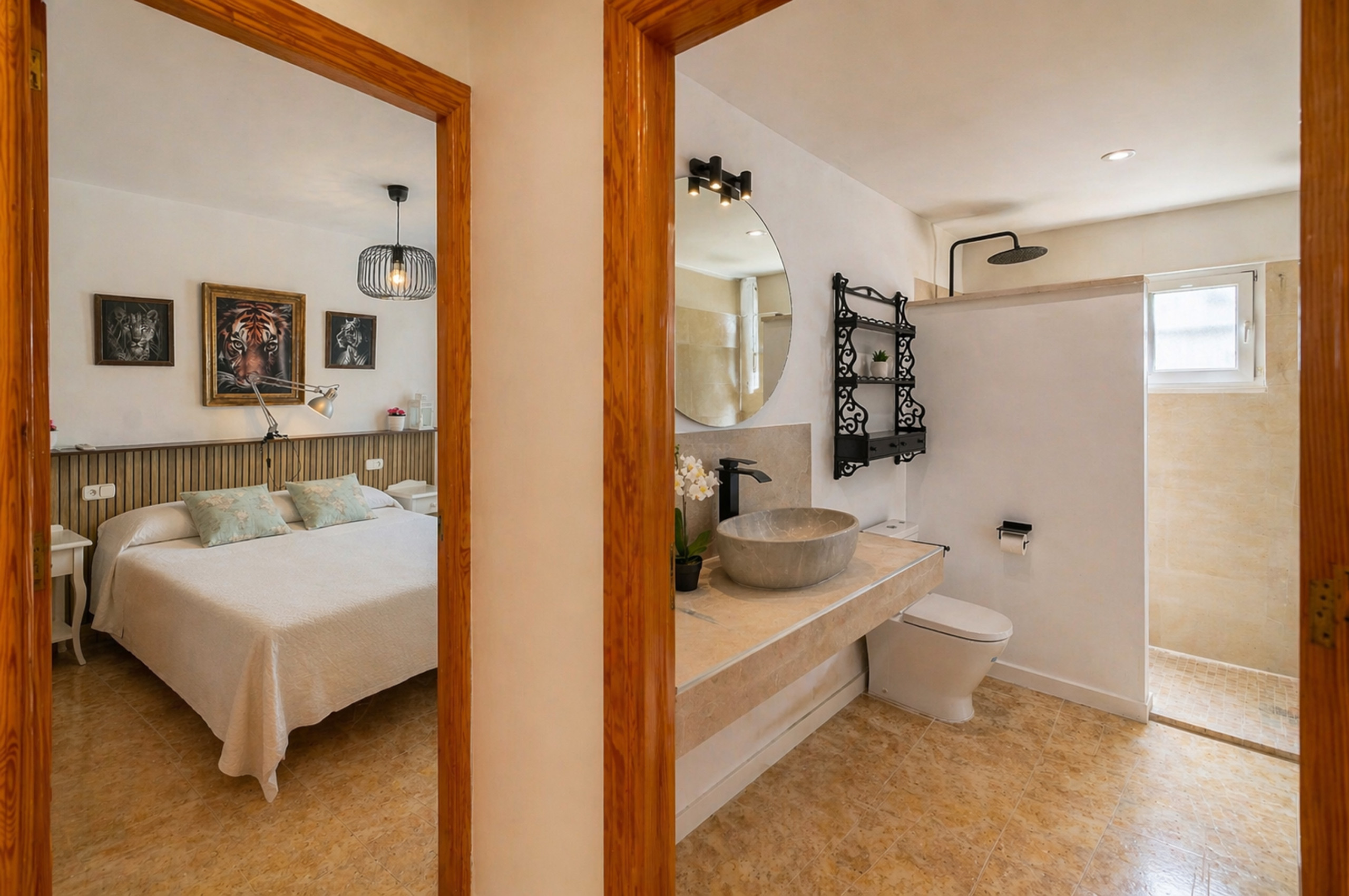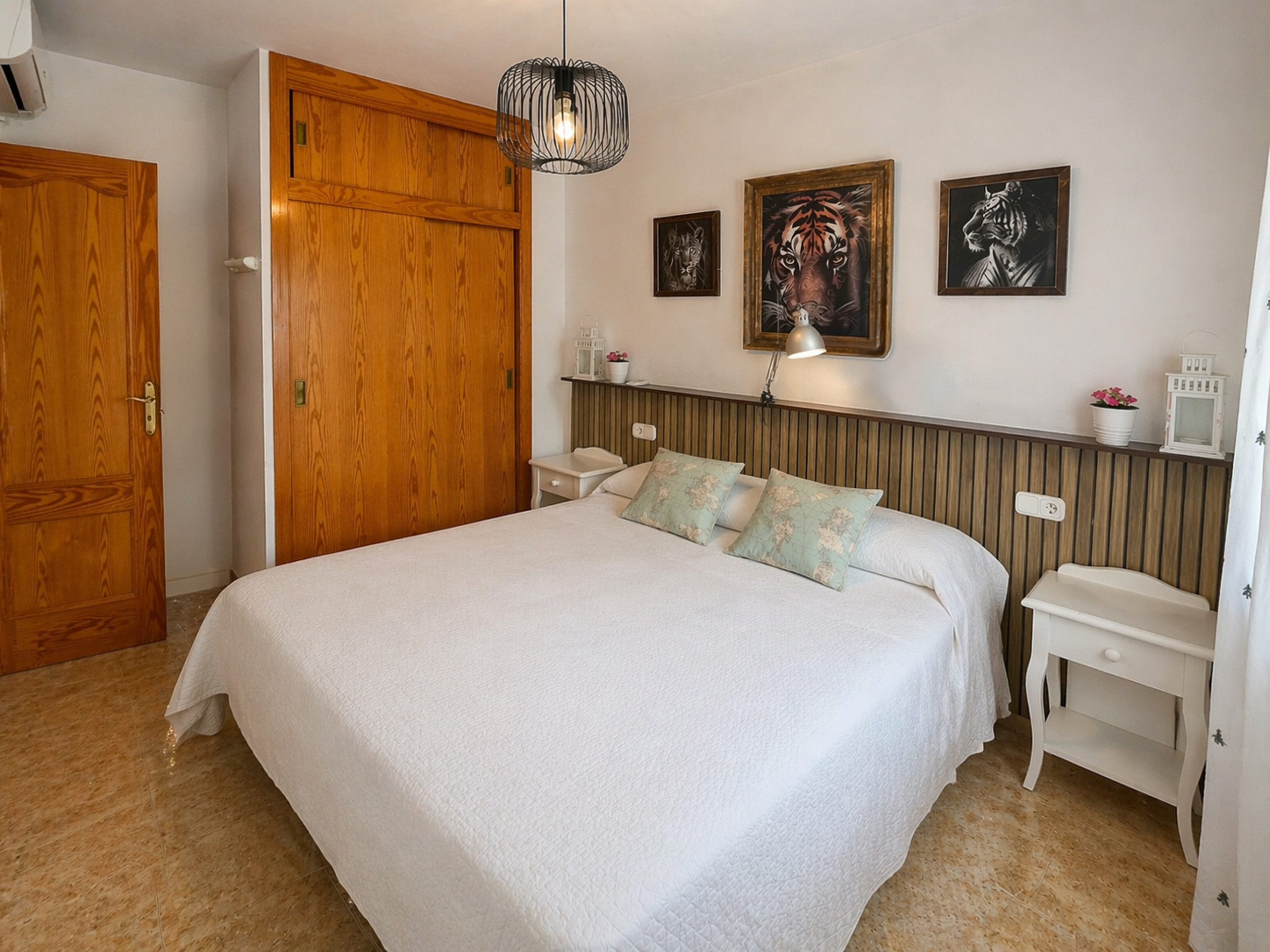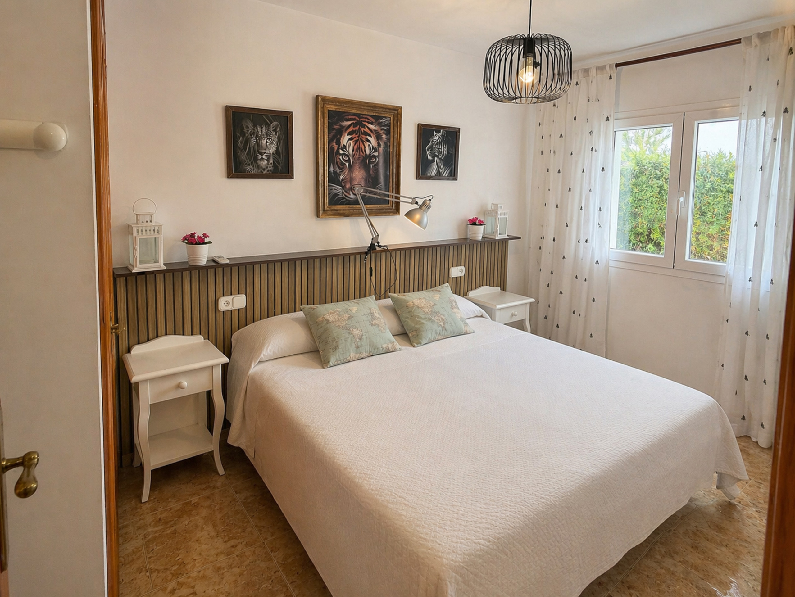 L´élégant intérieur s´étant sur un grand espace de 166 m² repartie sur 2 niveaux. Les deux niveaux ont un style authentique et moderne. Le salon est chaleureux et dispose d´une TV (satélite) ainsi que d´un canapé, un bar avec des chaises pour créer de délicieux cocktails, une zone à manger avec une table en bois pour toute la famille et une cuisine ouverte minimaliste avec tout ce dont vous avez besoin pour cuisiner vos petits plats préférés. Toute la décoration intérieure à été pensé avec beaucoup d´amour et de détail pour créer une agréable sensation d´espace sans sacrifier le confort et le style. Dans la partie supérieure de la maison se trouvent les 4 grandes chambres, toutes très modernes et confortablement équipées. Chaque chambre possède sa propre télévision, air conditionné et armoire encastrée.