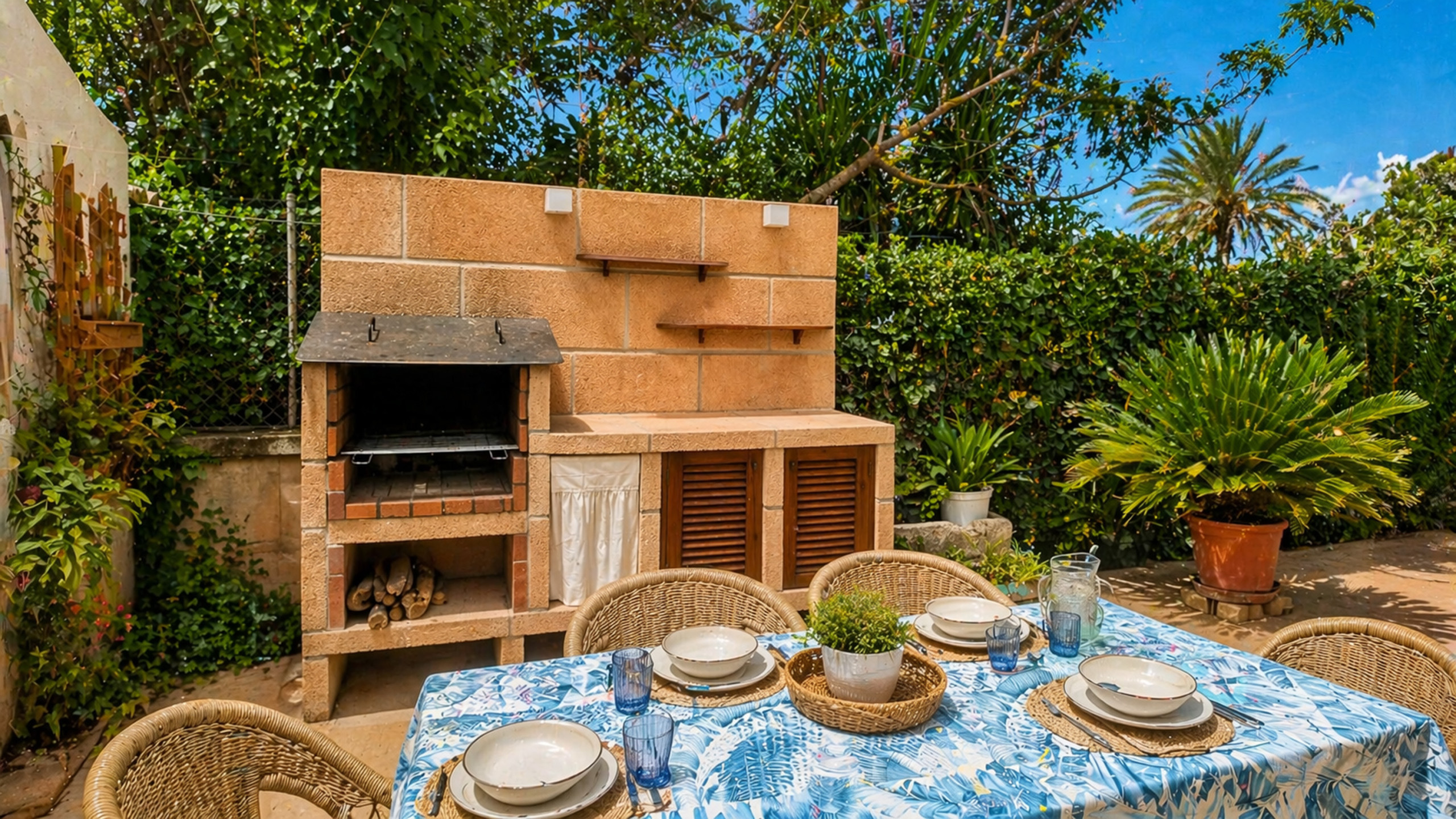 Le beau jardin dispose de zones vertes bien entretenues, d'un porche spacieux et d'un barbecue où vous pourrez profiter de délicieux barbecues. La piscine est l'endroit idéal pour se détendre et profiter du soleil de Majorque. La propriété assure intimité et atmosphère sereine.