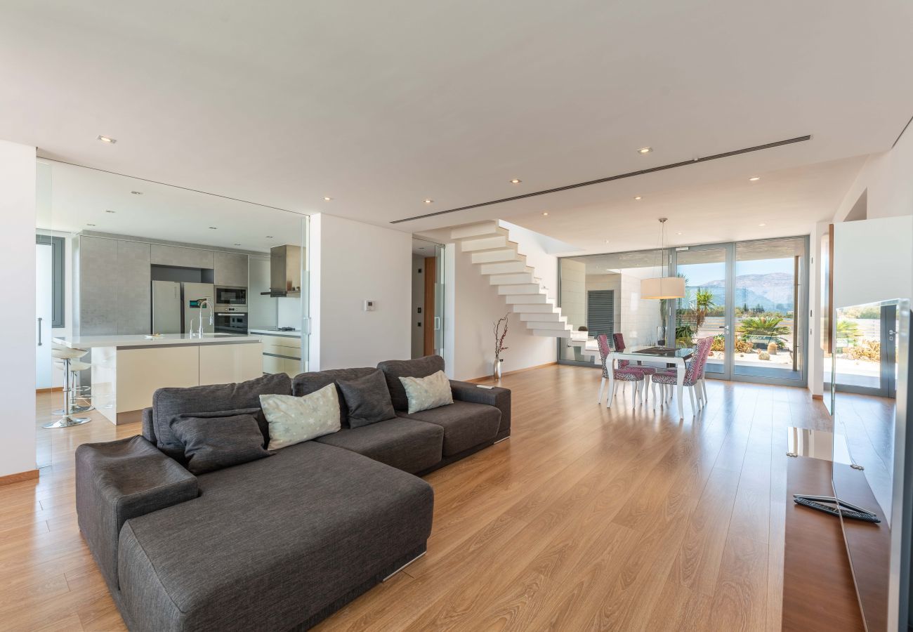 À l'intérieur, "Es Moli d'en Sion" brille par sa décoration moderne et de haute qualité, répartie sur 352 m² répartis sur 2 niveaux. Le rez-de-chaussée abrite un salon confortable, une cuisine ouverte entièrement équipée et 2 chambres doubles avec une salle de bains commune. À l'étage, vous trouverez 3 autres chambres, chacune avec sa propre salle de bains, offrant un confort et une intimité maximum.