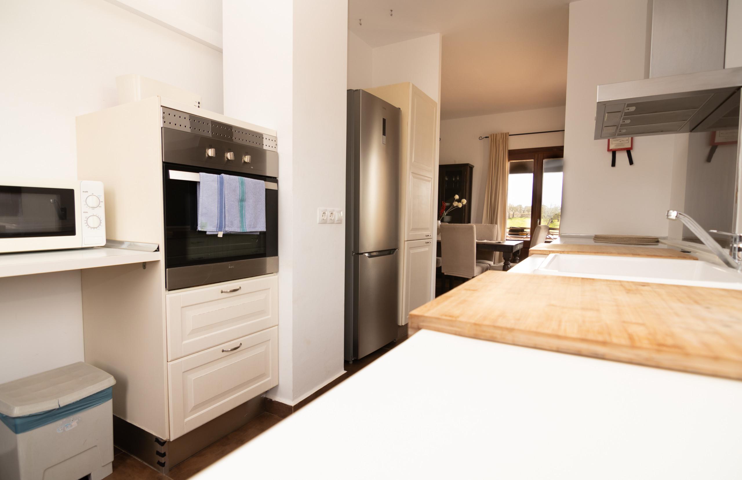La cuisine est entièrement équipée d'électroménagers de dernière génération, comprenant un réfrigérateur, un congélateur, un lave-linge, un lave-vaisselle, un four, un micro-ondes, une cafetière, un grille-pain et une bouilloire. De plus, elle dispose de tous les ustensiles de cuisine nécessaires pour préparer des repas délicieux.