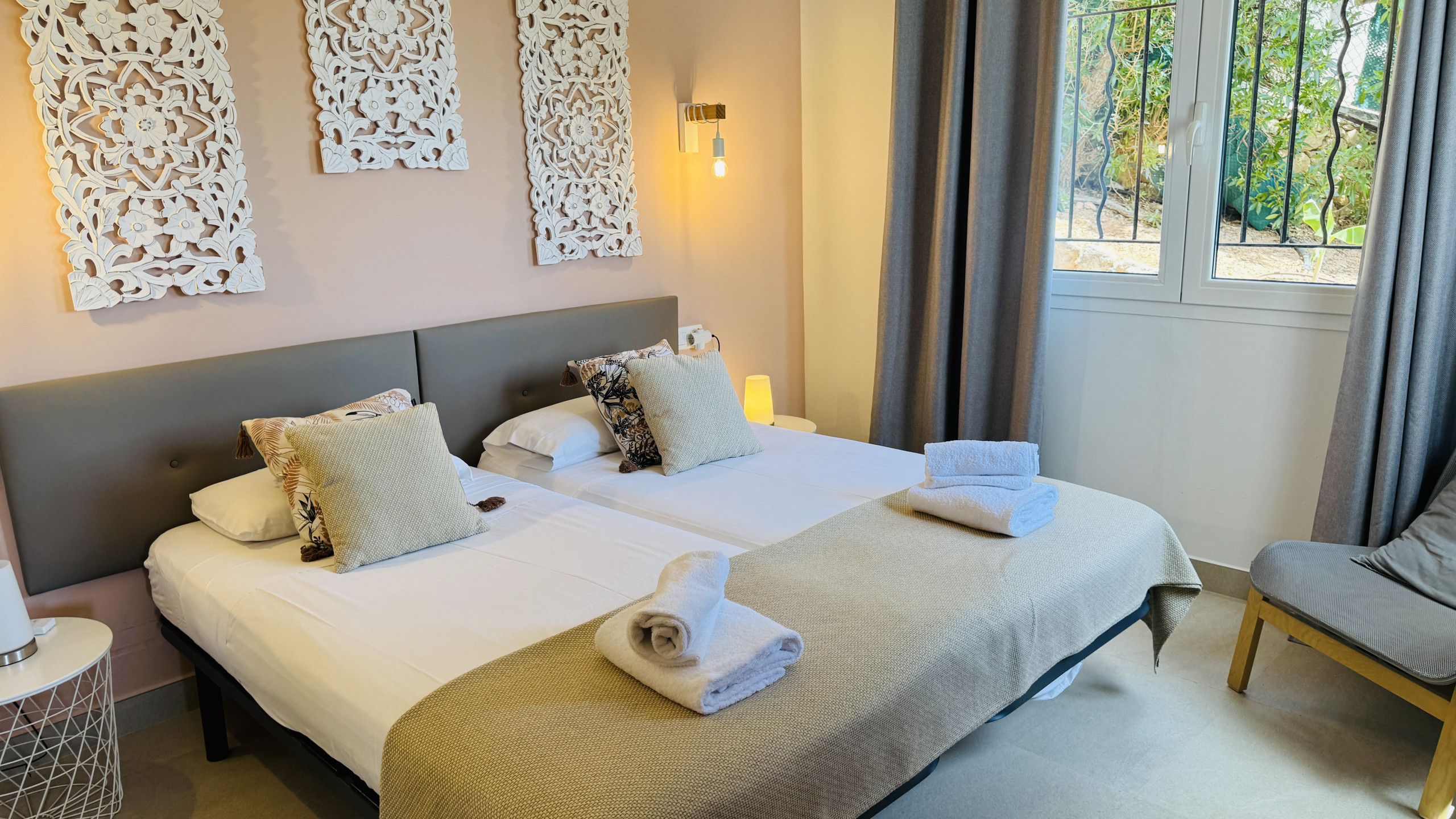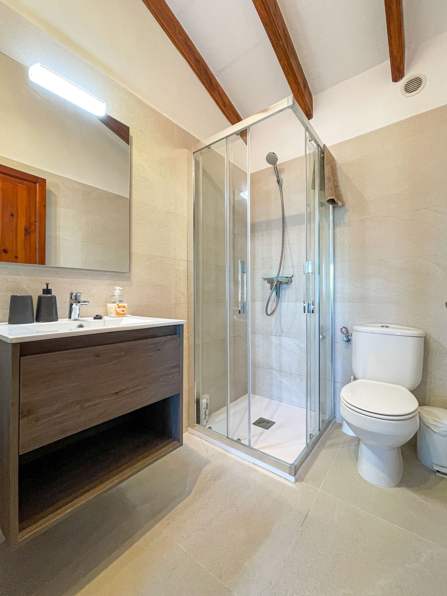 2. À l'étage inférieur se trouvent une chambre double et une chambre avec deux lits individuels et une salle de bain indépendante (baignoire et douche indépendantes) partagée entre les deux chambres.