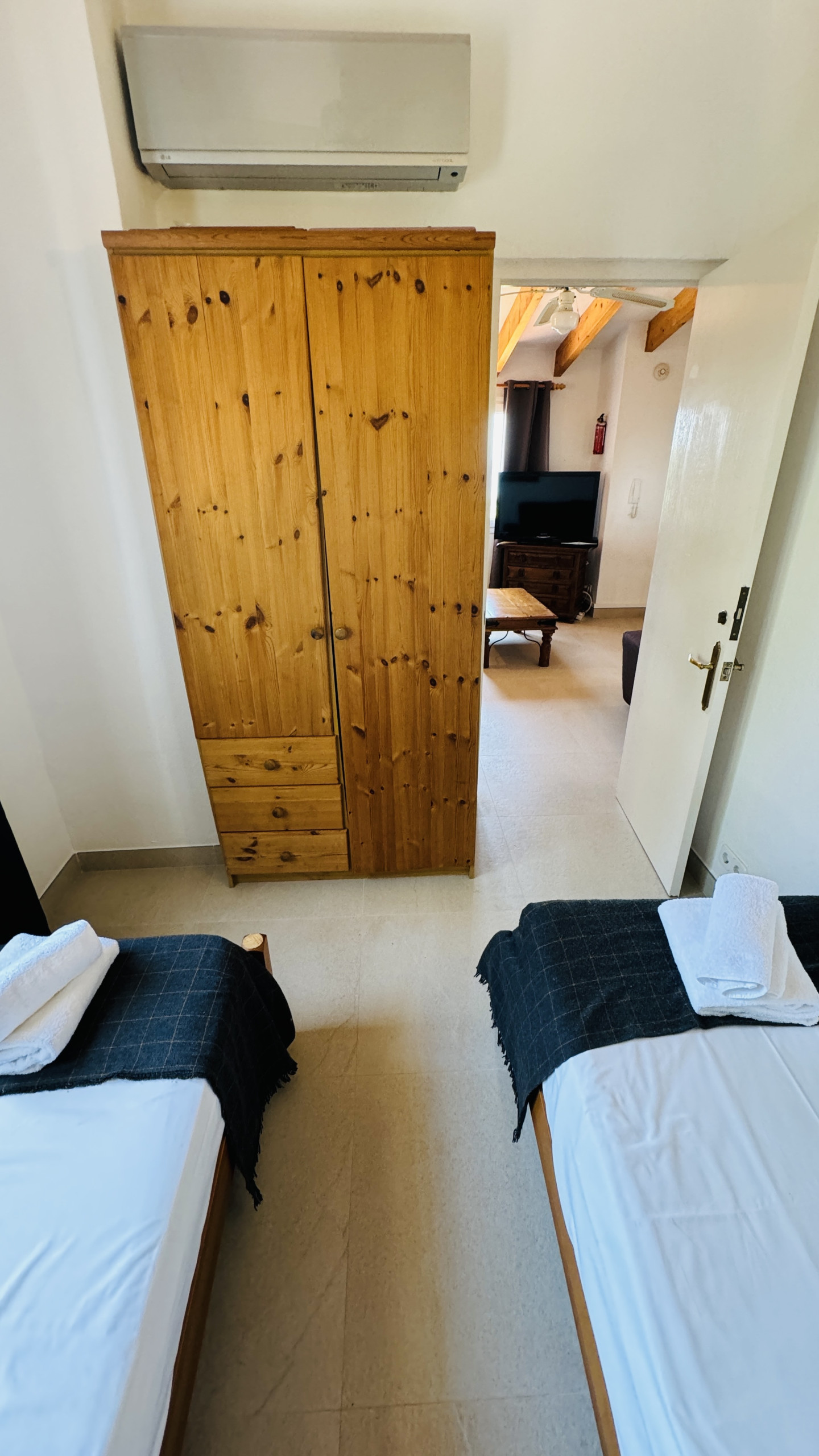 1 chambre double (deux lits individuels) avec climatisation et toilettes (lavabo et WC) en suite.