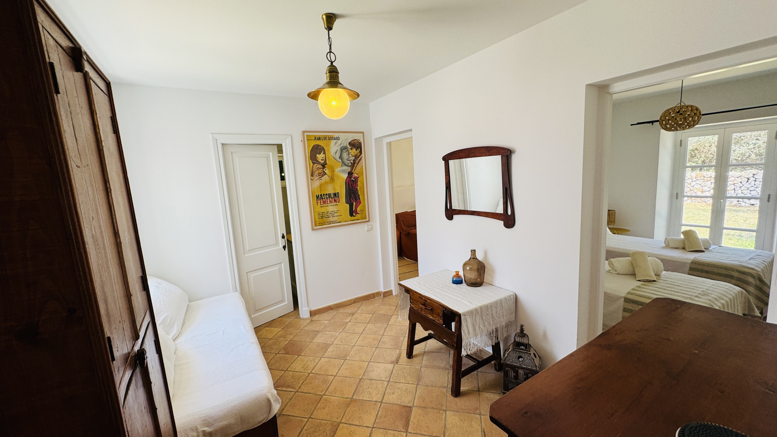 Strategically located, the house is close to the sandy beach of Binissafúller (3 km away), 4 km from the village of Sant Lluis, and just 3 km from a supermarket. Mahón airport is 11 km away, and Son Parc golf course is 32 km away. It is an ideal place for children, with multiple nearby attractions such as Splash Sur Menorca.