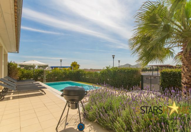 Modern family house in Barcares, for 8 persons, 4 double bedroom, 3 bathrooms, AC, heating, free wifi, private pool, garden with barbecue and terraces, in Barcares near Alcudia