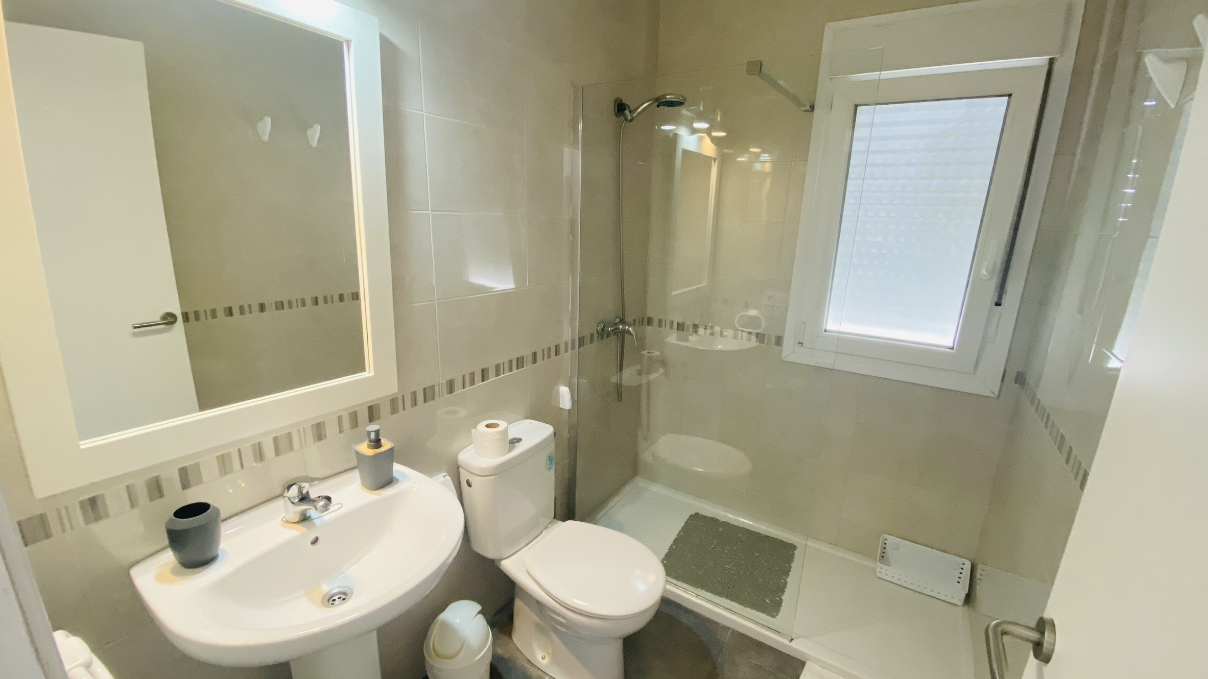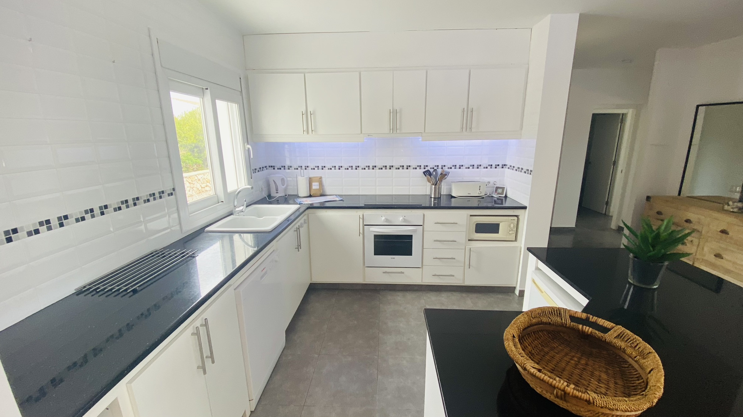 The American kitchen is fully equipped with state-of-the-art appliances, including a washing machine, dishwasher, oven, microwave, coffee maker and a wide variety of kitchenware. In addition, it has air conditioning and a heat pump to maintain a perfect temperature throughout the year.