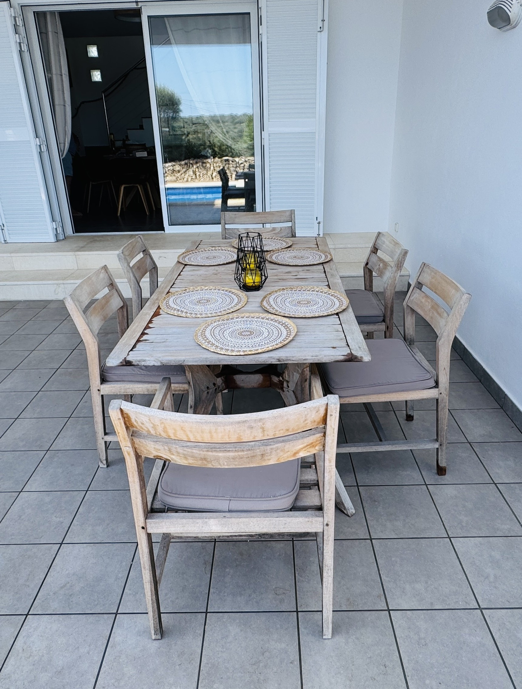 The house has a porch with a table and chairs for outdoor dining and sofas to relax in the shade. It has an artificial grass area with native vegetation and the pool, 7mx3m, is surrounded by terrace flooring. There is a built-in barbecue and a porch for parking in the shade.