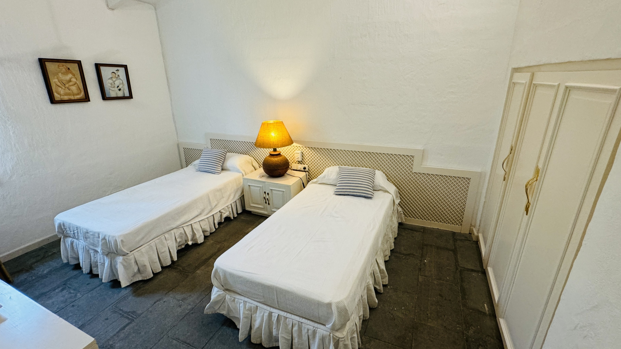 Ground floor: living room with air conditioning (cools the entire ground floor), kitchen, 1 bedroom with a double bed, 1 double room with two single beds and 1 room with bunk beds but only the bottom bed in use, and 2 bathrooms with shower.