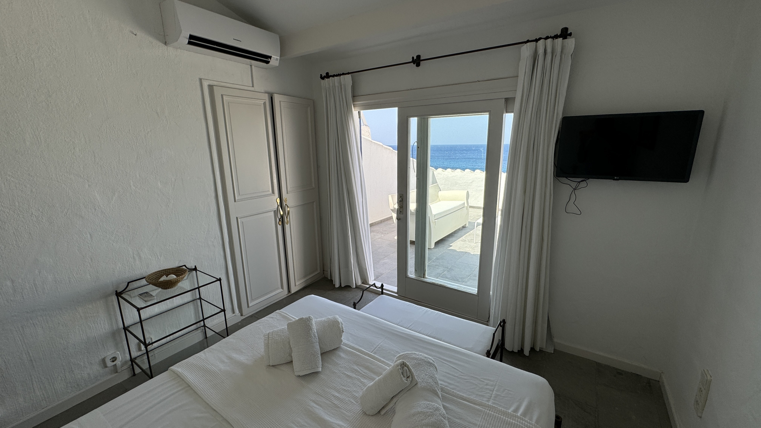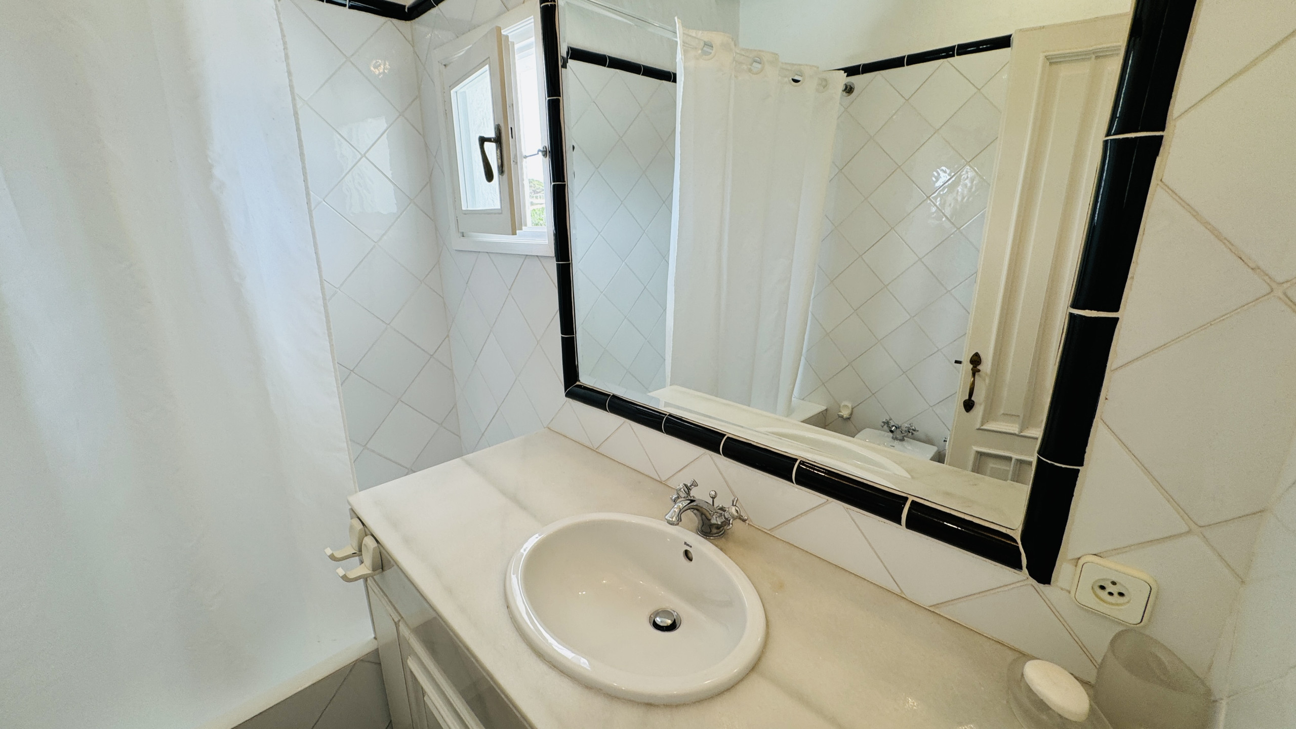 First floor: 1 main bedroom with air conditioning and beautiful sea views with a double bed, 1 en-suite bathroom with shower and terrace with sea views.