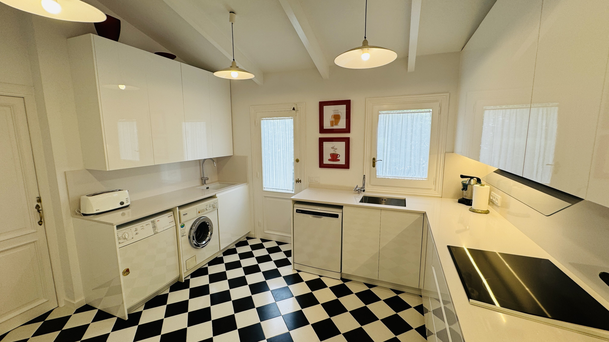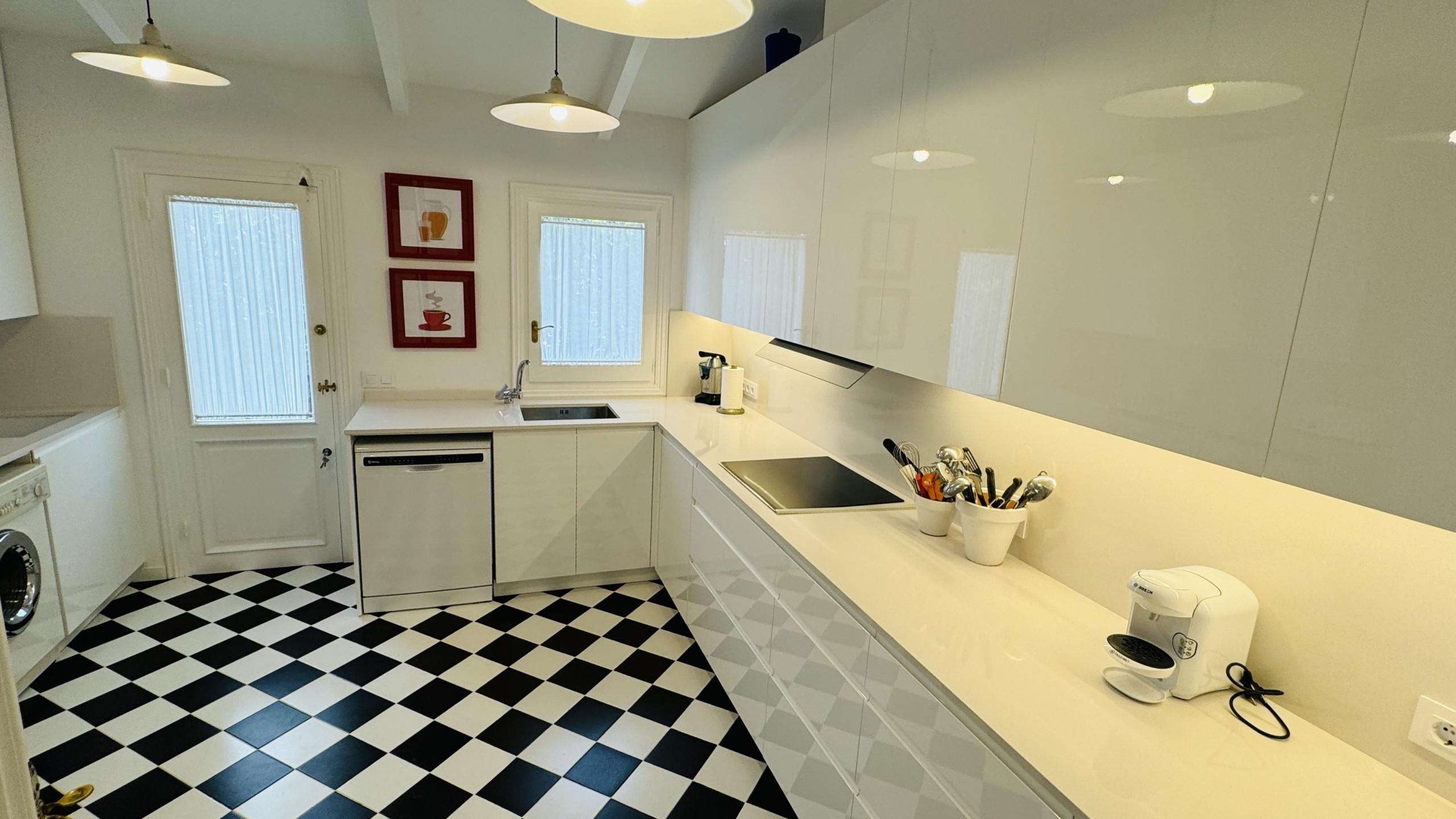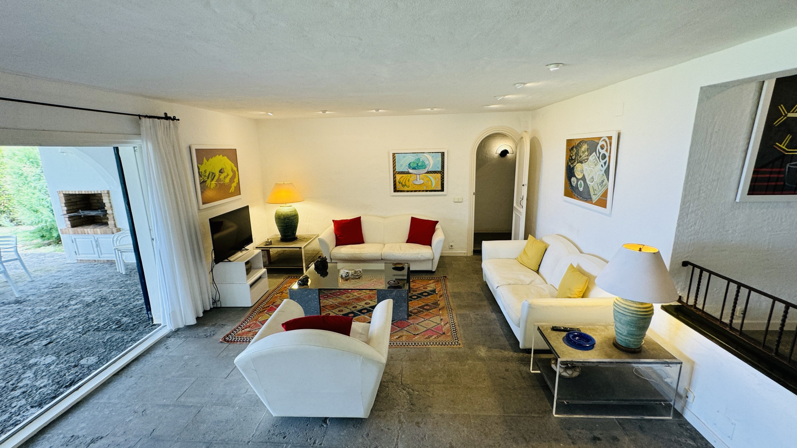 Practically the entire house is on a single floor with sea views, natural light and has air conditioning in all rooms on the main level. From the living/dining room, open to the kitchen, you can access on one side a large main bedroom with a dressing room and an en-suite bathroom with an independent design bathtub and shower. On the other side of the house are 2 double bedrooms and 2 bathrooms with a shower.