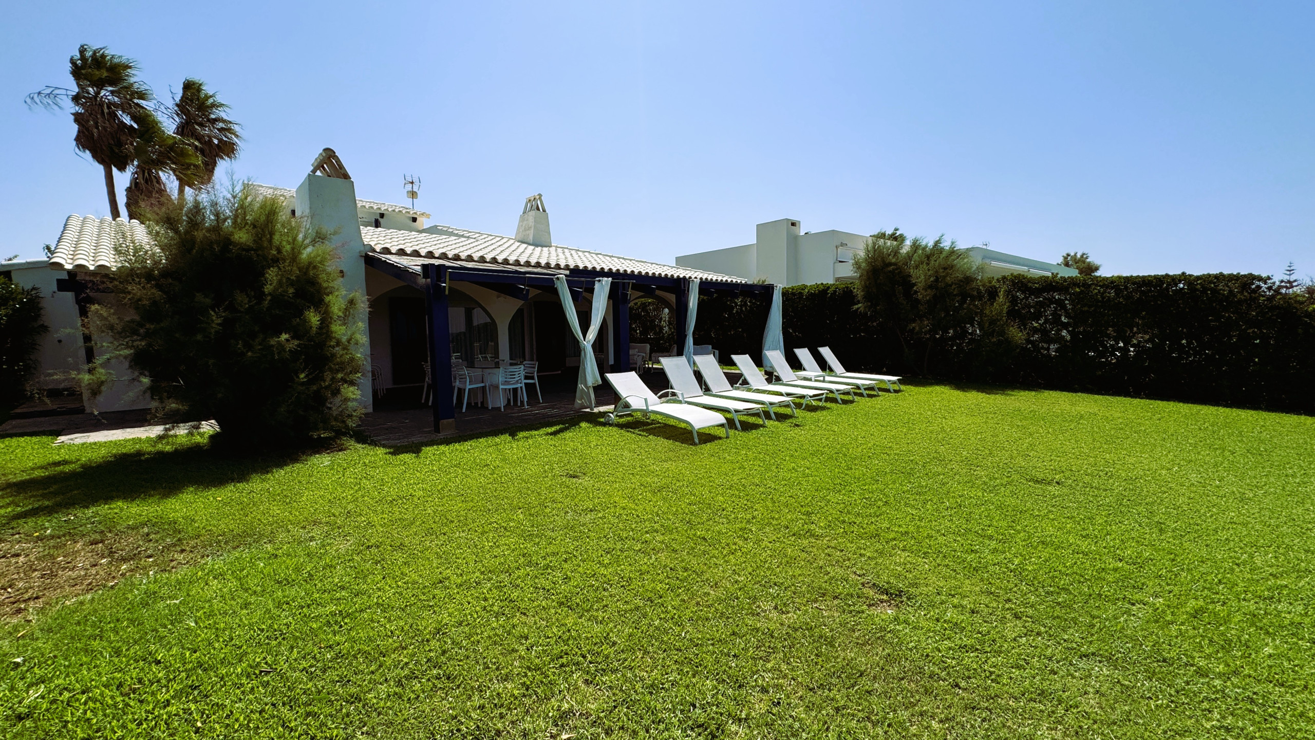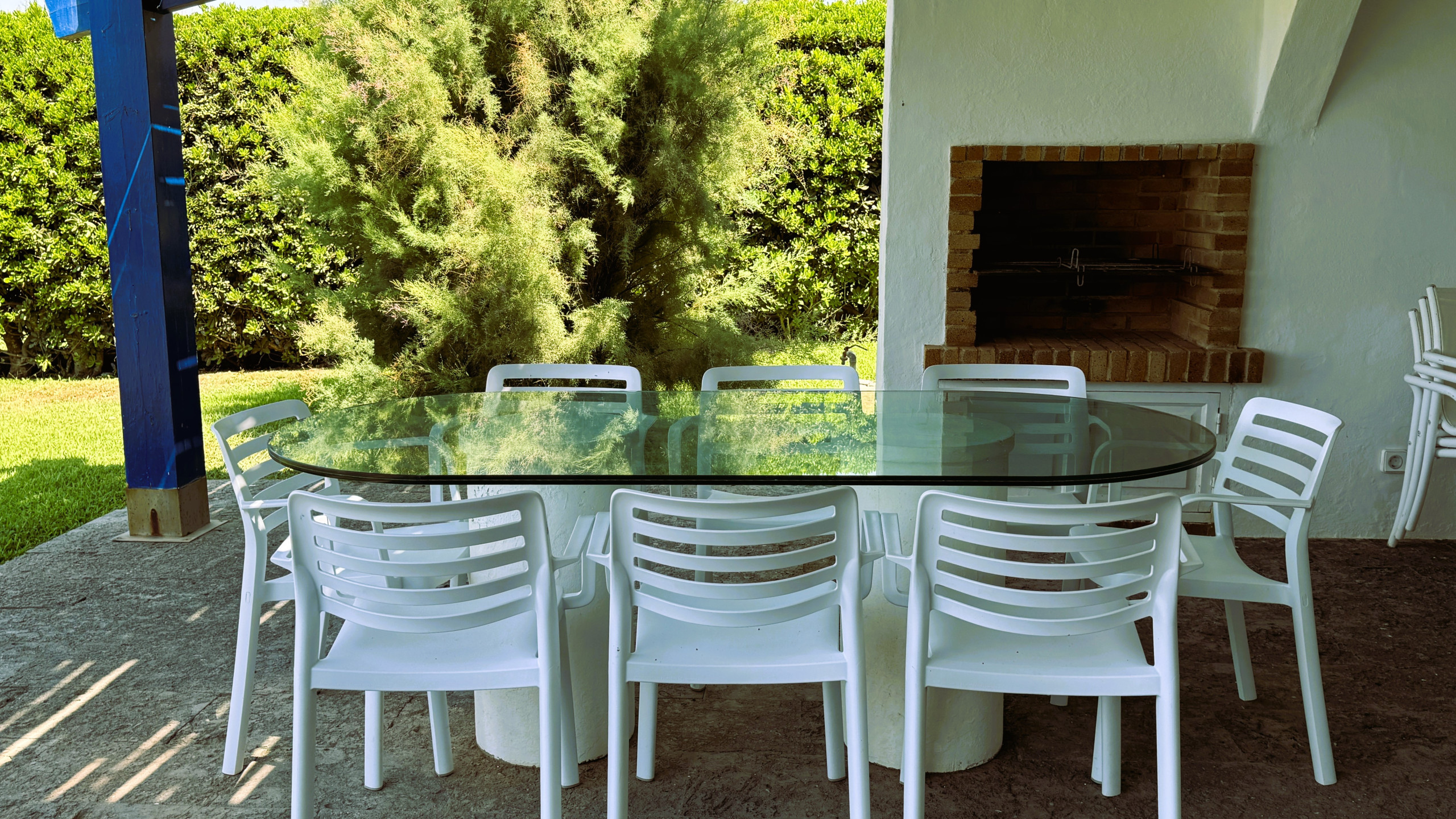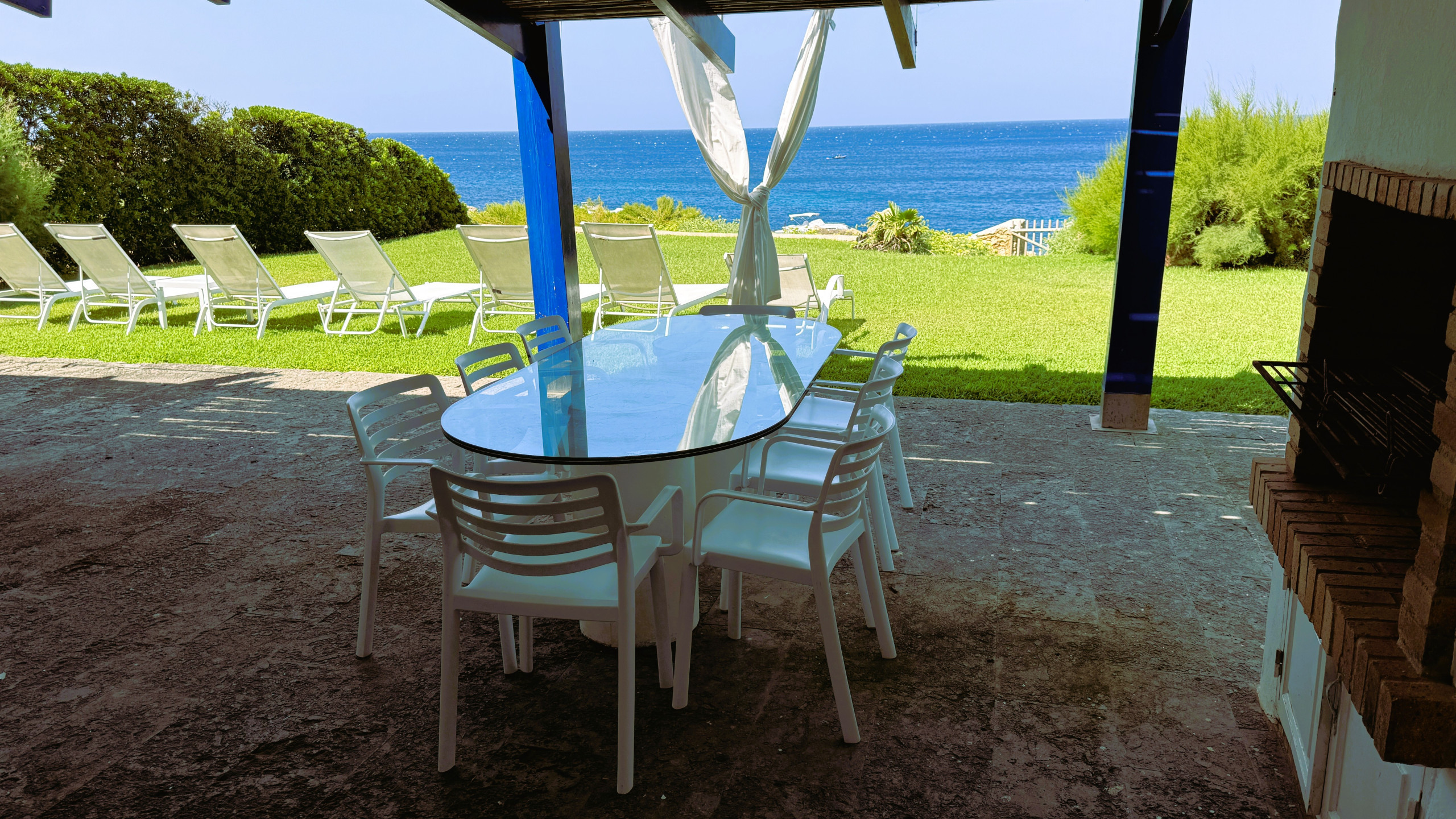 The house has a large pool (salt water), lawn area and enjoying wonderful views of the sea and sunset. The terrace has a table and chairs for eating in the shade, and also with exterior built-in sofas. From the garden you can go down to the sea. On one side of the house is the built-in barbecue, with a barbecue table, and a sink for washing up.
