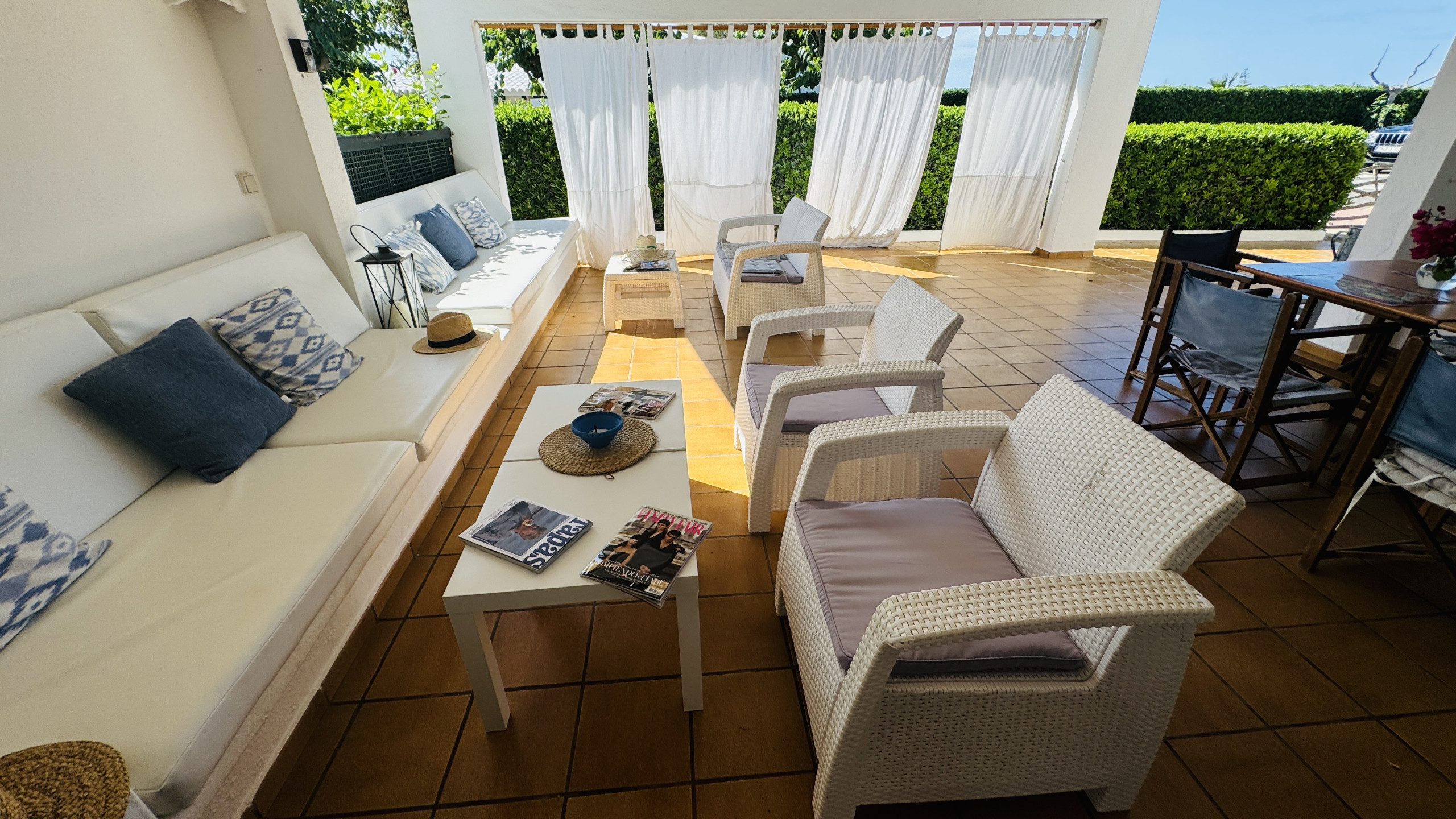 The exterior is a true family paradise with 2000 square metres of plot facing the sea, which include garden, 50-metre terrace, garden furniture and barbecue. The area is fenced, offering security and privacy. Additionally, it has 2 outdoor parking spaces.