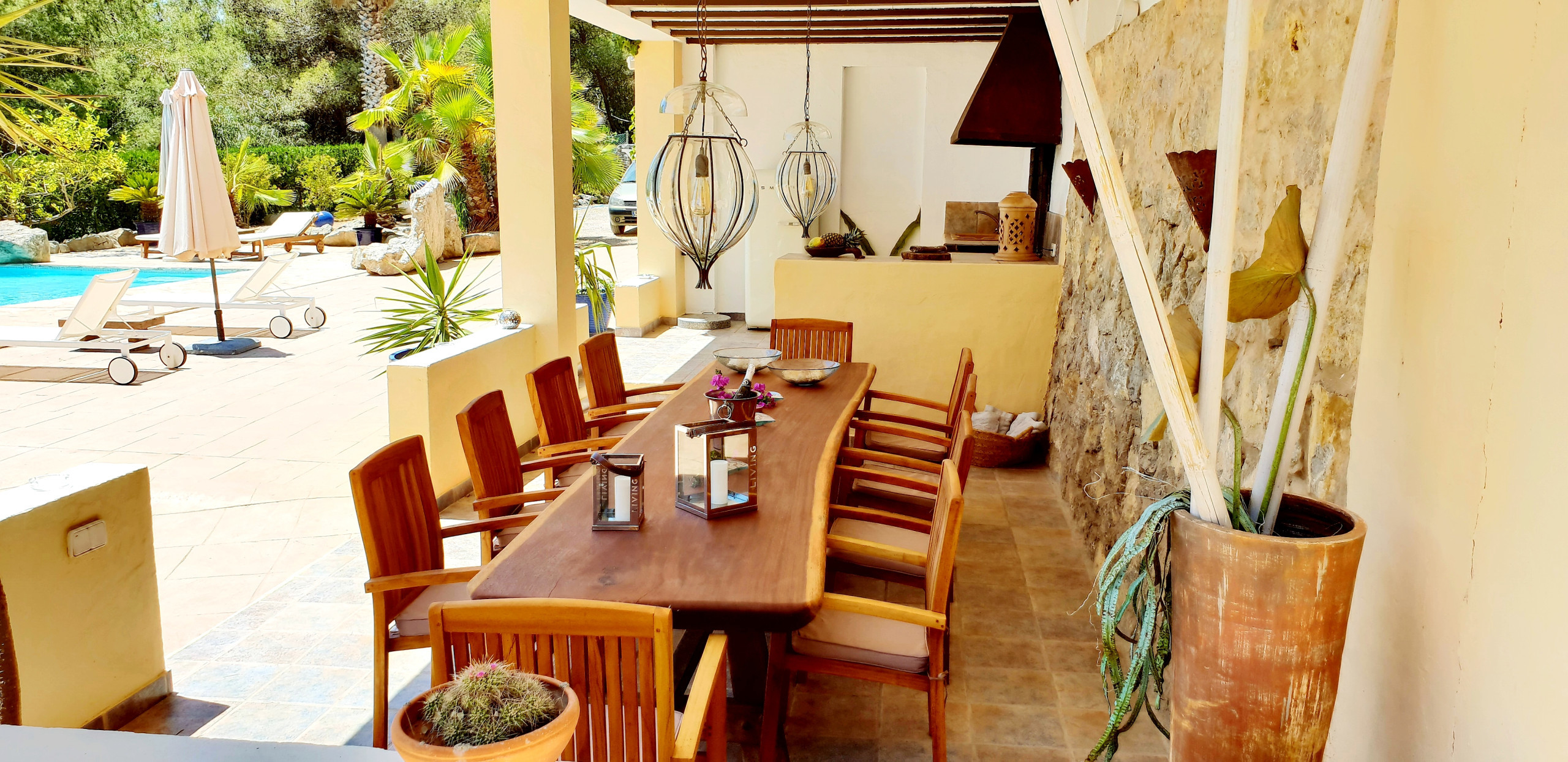 This stunning villa, ready to accommodate up to 8 people, features four cozy bedrooms and two bathrooms, spread across a spacious 225 square meter space. Can you imagine waking up surrounded by the serenity of the Ibiza countryside?