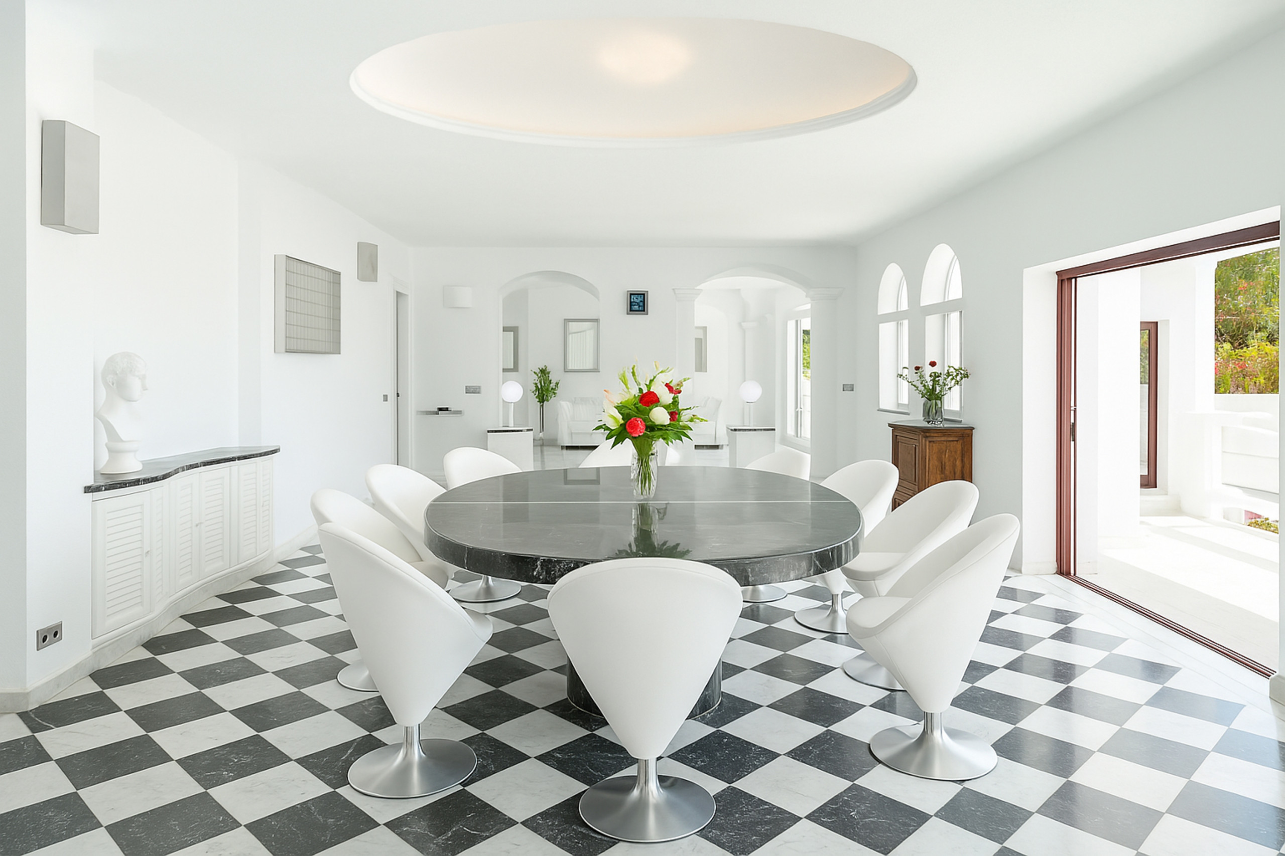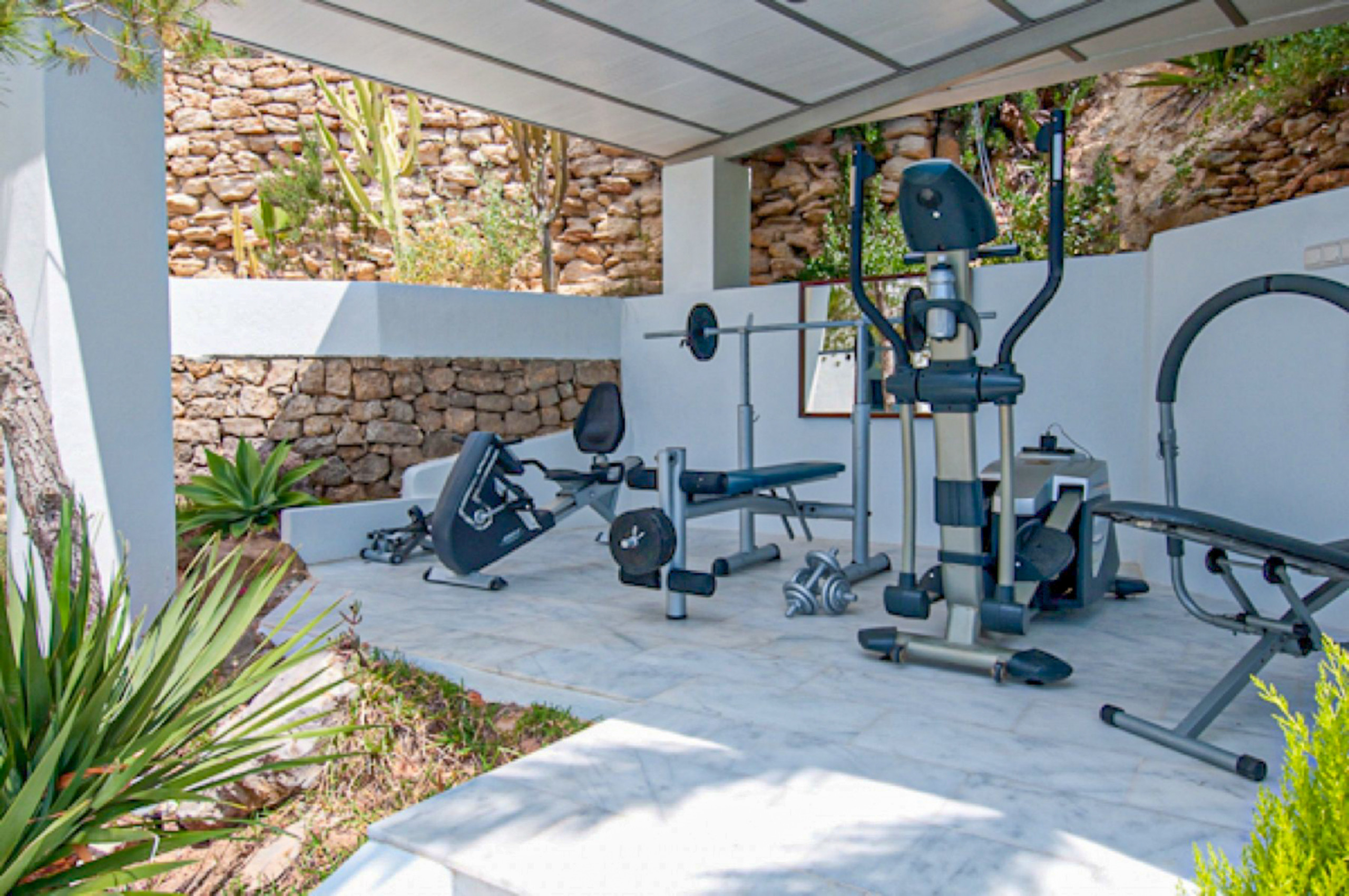 The outdoor solarium offers another irresistible option to enjoy the outdoors, whether with a cocktail at sunset or a dinner by your private pool. And best of all, this unique villa is just a stone's throw away from the exciting city of Ibiza and the sea.
