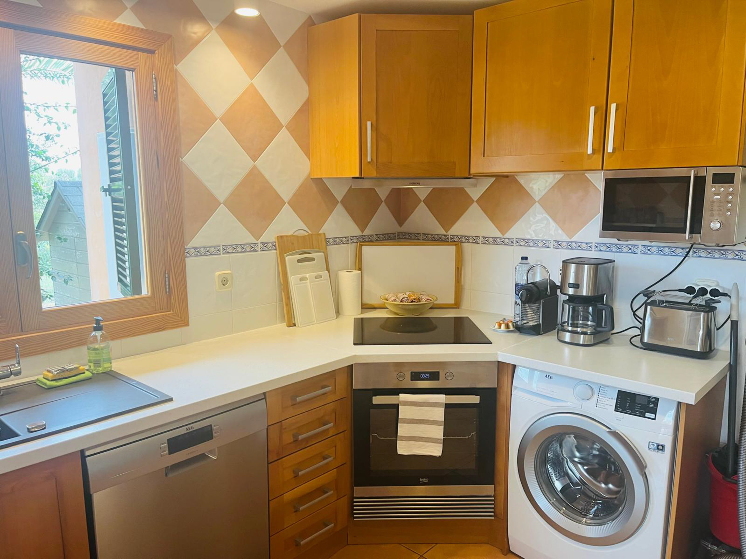 With an exquisite vintage-style decoration, using light tones and natural materials, Caluix emanates a warm and welcoming atmosphere. The kitchen is equipped with all the necessary appliances to prepare delicious meals, while the living-dining room offers a bright space with a spacious sofa to relax and a large solid wood table to enjoy unforgettable moments in company.