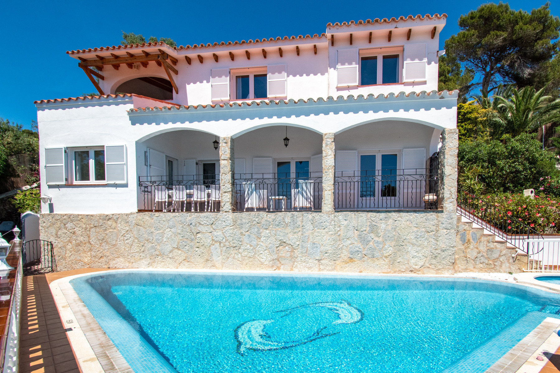 Spacious recently renovated detached villa in an isolated location with stunning sea views. It has a large swimming pool with Roman steps and a built-in barbecue. Satellite television is available. Air conditioning is present in all rooms, making this an excellent option for a family getaway. Located quite high on a hill. Bars, restaurants, shops and the beach can be reached on foot, but remember that you will need to climb back up.