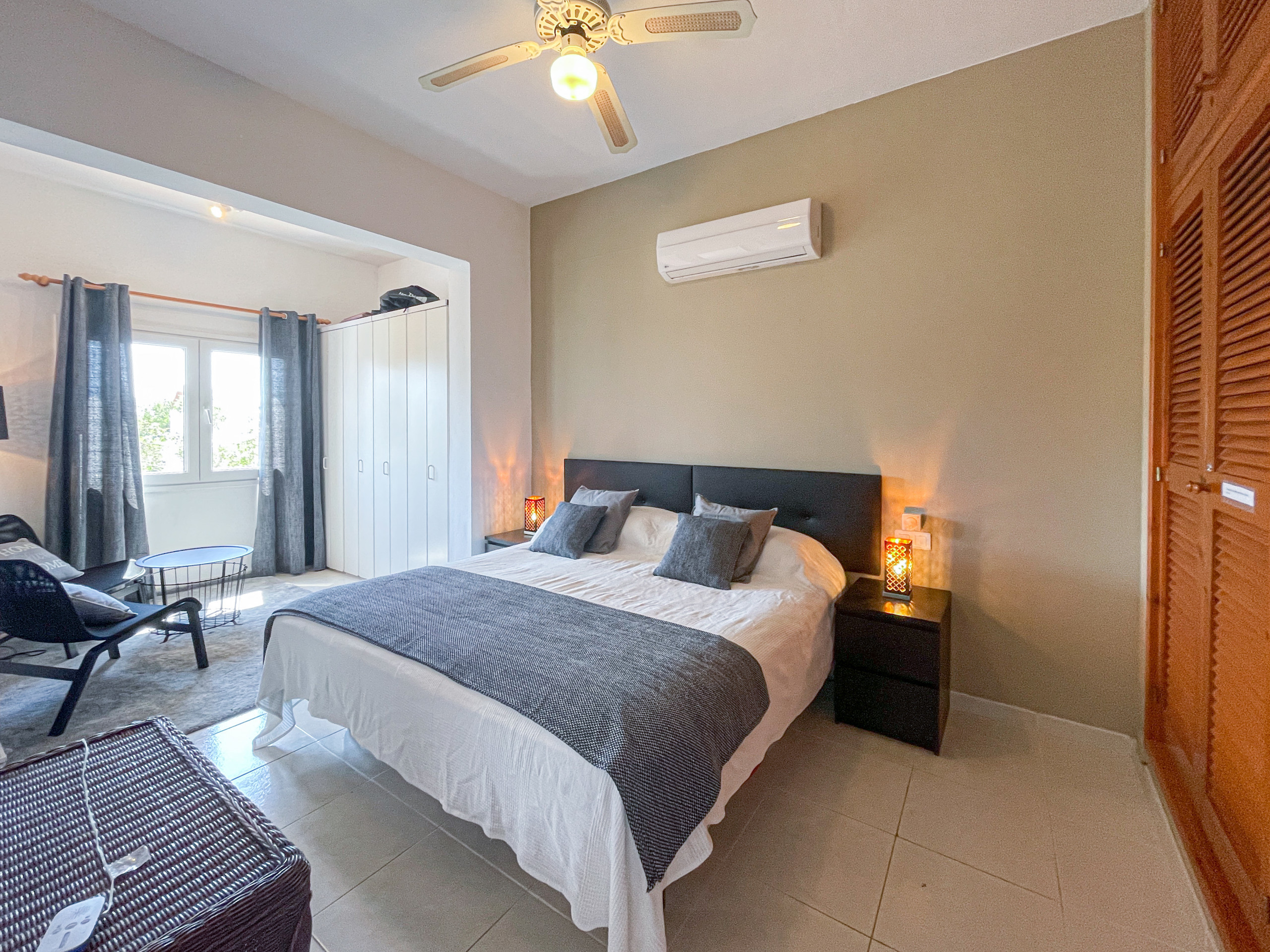1 master bedroom (king-size bed) with en-suite bathroom and air conditioning.